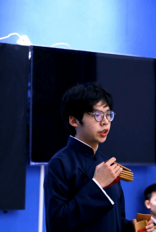 苏老师发表热情洋溢的讲话后,又有八位老师先后上台,给剧社四个部门的八名负责人颁发聘书后,大会就进入了文艺汇演时间。首先是身着相声马褂的蒋汶壕同学,一段流利的相声贯口《同仁堂》,有板有眼地表演了下来,博得满堂彩。陈文华同学来了一段脱口秀,诉说了自己的心路历程,引起共鸣。接着在互动环节中,多名同学表演绕口令,以及“你比划、我来猜”的环节中,十多名现场“抓”的同学上台,上演了各种出糗各种尬,更是让同学们笑疯了。