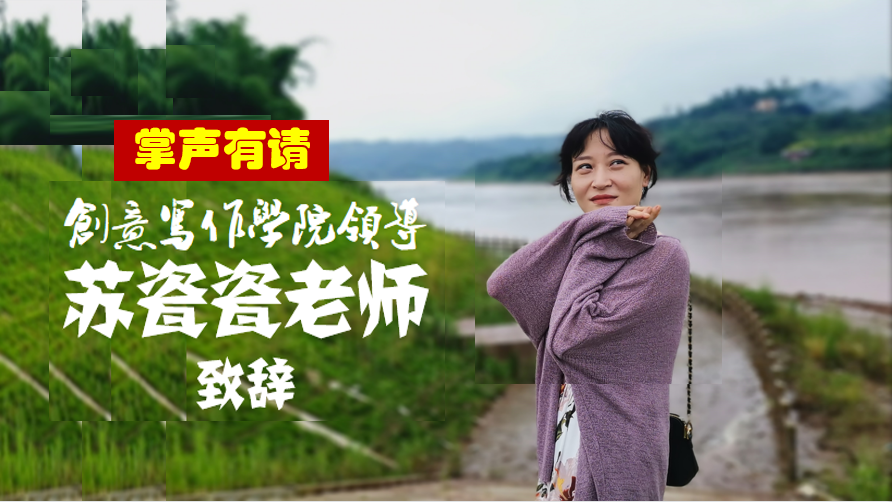 主持人分别是李博文同学和王春燕同学。在全场一次次热烈掌声中,各位嘉宾老师依次亮相,创意写作学院副院长苏瓷瓷老师上台致辞,这是一位美女作家老师,她毫不吝啬地赞美了各位戏剧社的同学是有眼光的,对人生是有想法的,对活着、活出精彩更是有独到理解的,当然她更是赞美了王恒绩老师的辛勤付出,说王老师总是自讨苦吃。王老师听后,在一旁温和地笑,都知道他特别喜欢可爱的同学们。