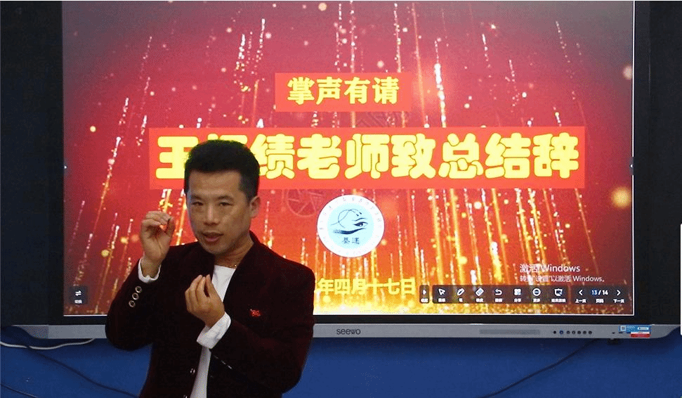 王恒绩老师致总结辞,他深情地表述了创办这个剧社的初衷,以及对同学们的种种期望。他说:感谢各位今天齐聚在綦遇创意戏剧社成立大会的现场,共同见证一个新生社团的诞生,因为有你,因为有您,她指定是一支潜力股,绩优股,将会一路上扬,直至手可摘星辰。未来的青春岁月中,我们将和大家一起在移通学院共同成长,共沐风雨,也共看彩虹!綦江是个好地方,移通是所好大学,彼此相得益彰,和平盛世,国强民富,学子们读书既能“弱冠弄柔翰,卓荦观群书”,也能“月上柳梢头,人约黄昏后”。未来,他将与同学们一起,让剧社的舞台闪亮起来,一起飞!