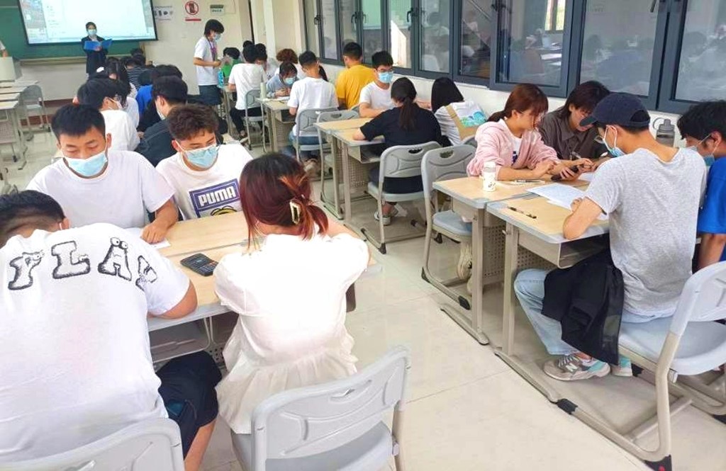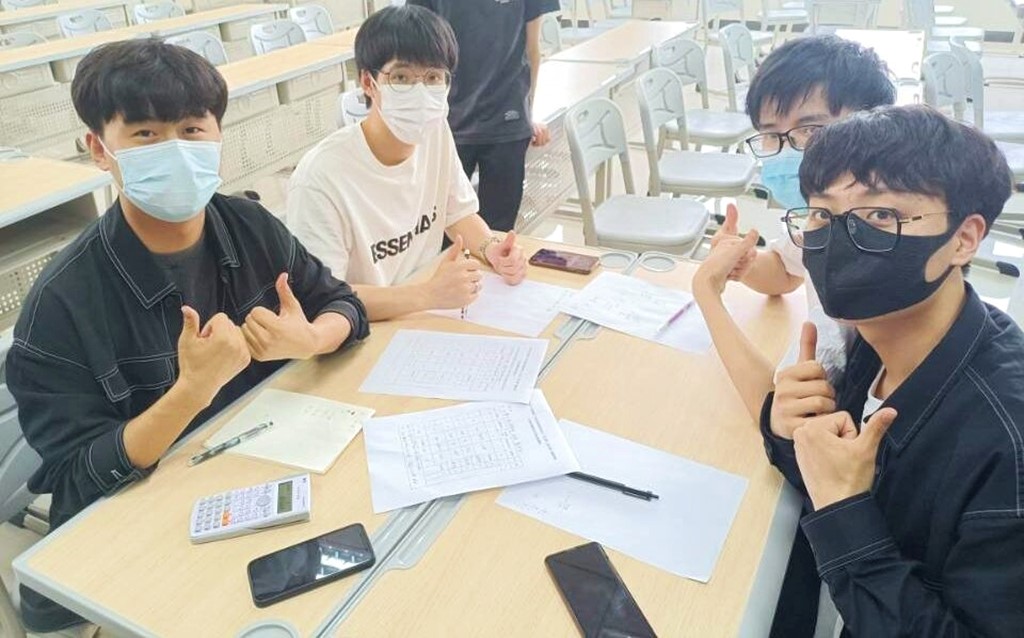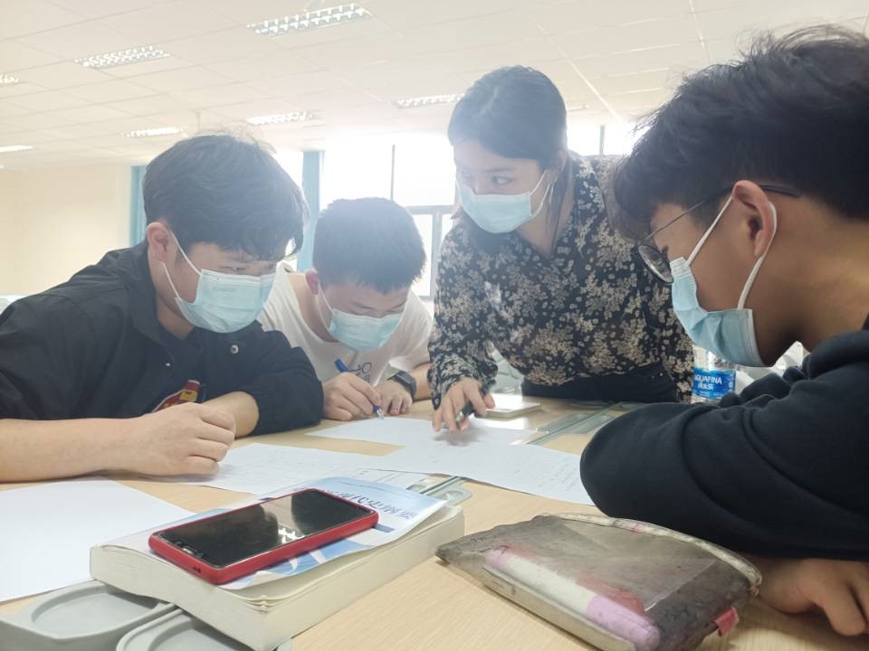 等到所有小队代表上台介绍完毕,比赛进入到理论知识测试的环节。参赛选手们接过答题卡和草稿纸回到团队运用所学理论知识开始计算,在答题的过程中,每位参赛选手都在各自的团队中找到自己的分工,大部分的队伍做法是:分出两个同学进行对题目的讨论,分析解题思路,让另一位同学对此进行计算,还有一位同学进行检查与核算,这是合理的分配策略。也有部分团队由四个人一起讨论,一起计算并相互对照最后写下结果,这样的方法也另有奇效。在每位同学抓紧时间作答,热烈讨论问题的过程中,评委老师并没有置身事外,专业老师下场与同学们一同探讨计算问题,在老师的帮助下,选手们也查找到自身的不足并予以改进,巩固了学习知识,提升专业技能水平。