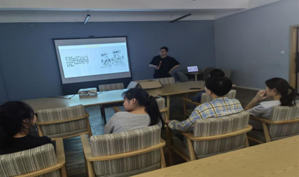 当课堂中,在主讲人为大家介绍大学生为什么熬夜时,有着相同经历的同学都感到共鸣。讨论环节中,同学们述说着或是下课的晚归,或是备考的艰辛,或是沉迷于视频、游戏,又或是作业的繁重以及室友的影响,各种原因归结而来造成熬夜成为了大学生的一种生活常态。