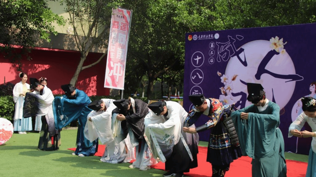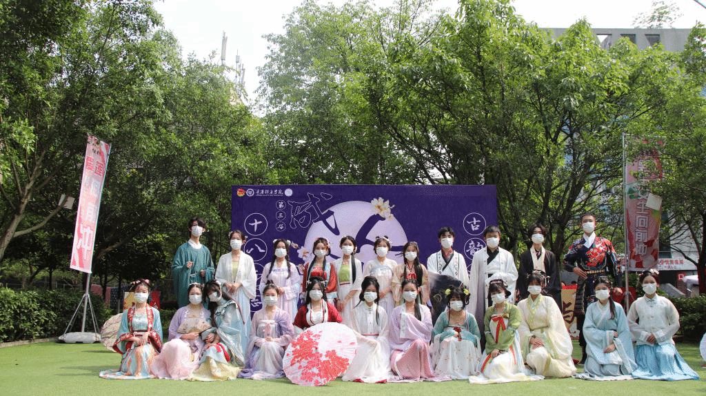 沿传承之礼仪,为即将成年的学生们进行加冠与及笄之仪式,以贺成年,且表示责任担当需落于心。2022年4月27日下午15:00,华韵汉服协会携爱莲书院、书法与美术协会、逸轩棋社、DIY手工协会、摄影协会于爱莲书院小广场举办“十八而志·古韵有礼”第三届成人礼暨国风雅集活动。