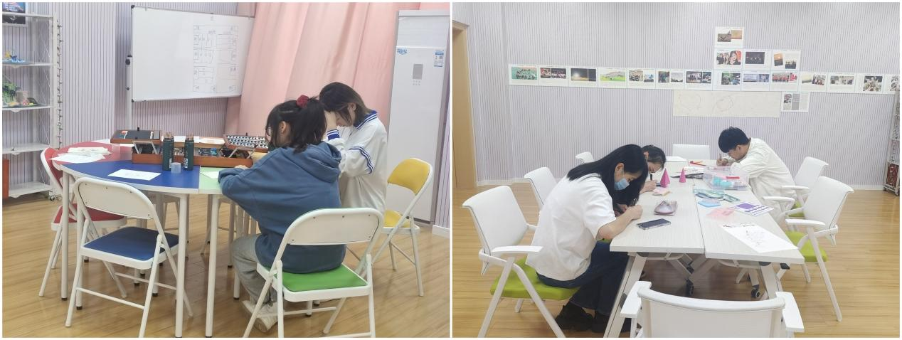 一些同学,可能因为时间原因,并没有提前写好,因为活动可以在现场进行书写,于是同学们拿着彩虹心语社干事提供的信纸和便签,一部分人在干事的带领下来到心理团辅室进行书写。心理团辅室为他们营造了一个安静舒心的环境,有助于他们更好的将自己的内心想法呈现在信纸上。另一部分人则在文化墙外进行书写。时间缓缓流过,写好的同学都排着队将写满自己内心世界的信纸,投入了信箱里面。