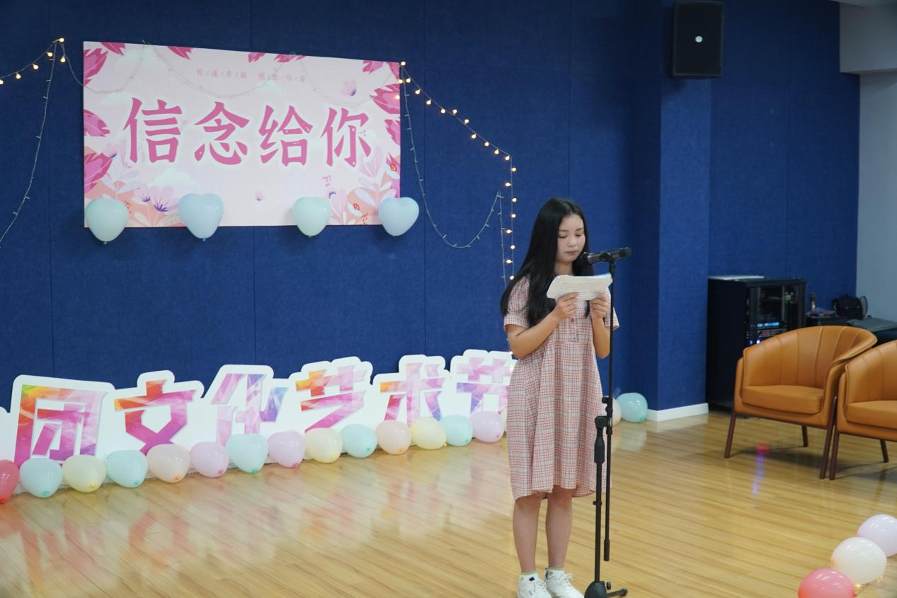 爱情是永恒的主题,在十七八岁情窦初开的年纪,你是否也有专属于爱情的烦恼与酸甜苦辣呢?尹凯同学分享了的《致未来的她》,对爱情的憧憬,打动了现场的每一位观众。圆满当然最好,可生命中遗憾是常事,范丽同学也说到“面对遗憾,我们要学会释怀,正确的那个人会在未来等你。”