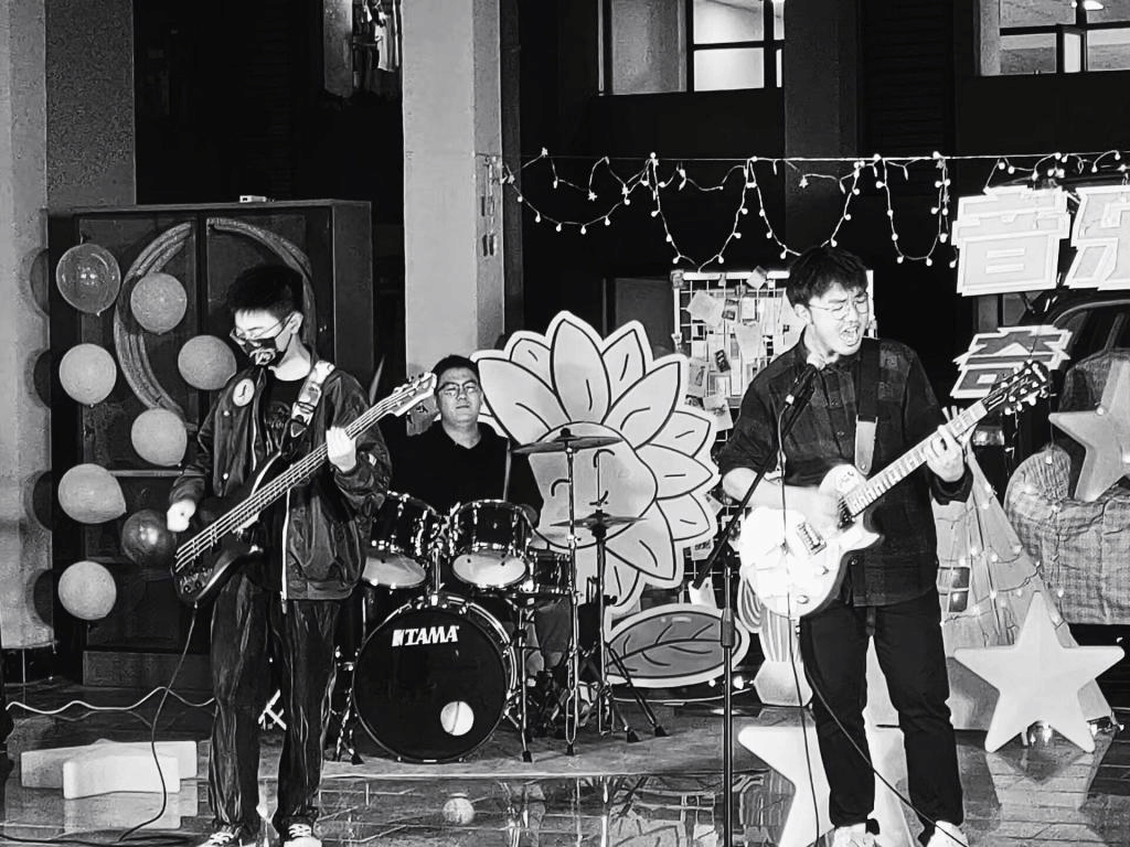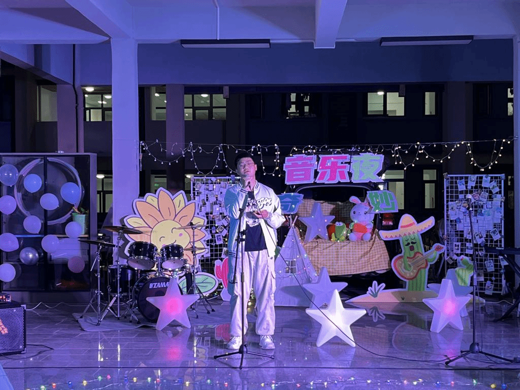 民谣、嘻哈、流行、以及乐队等多种类型的歌曲,也有古筝、吉他、贝斯、架子鼓等乐器的表演,这个夜晚,以音乐来共度,为平淡的生活增添一点社团乐趣。