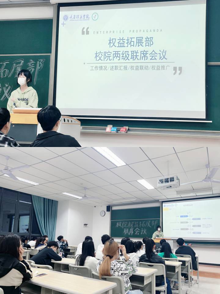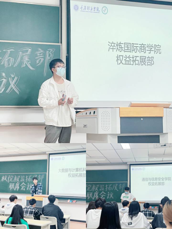 会议伊始,校学生会权益拓展部以及各二级学院权益拓展部负责人分别对本学期日前的工作进行了汇报并作出总结。开学至今,校院两级权益拓展部主要开展活动如下:参与“3.15维权事件簿”活动、“反诈校园行·防骗齐步走”防诈骗系列活动也在四月相继推出、并组织开展共青团“青年大学生的网络素养养成记”网络课程的学习和“消费购安全,维权有守护”反诈知识推广活动等,为同学们的课余生活增添了良多趣味,并在轻松愉快的氛围中提高相关维权知识的了解程度。