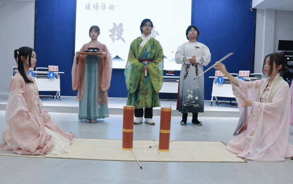百舸争流千帆竞,乘风破浪正远航。汉服社在比赛开始前,向在场的观众展示了何为投壶之礼,把大家对此次诗文决赛的期待值直接拉向一个新高度。