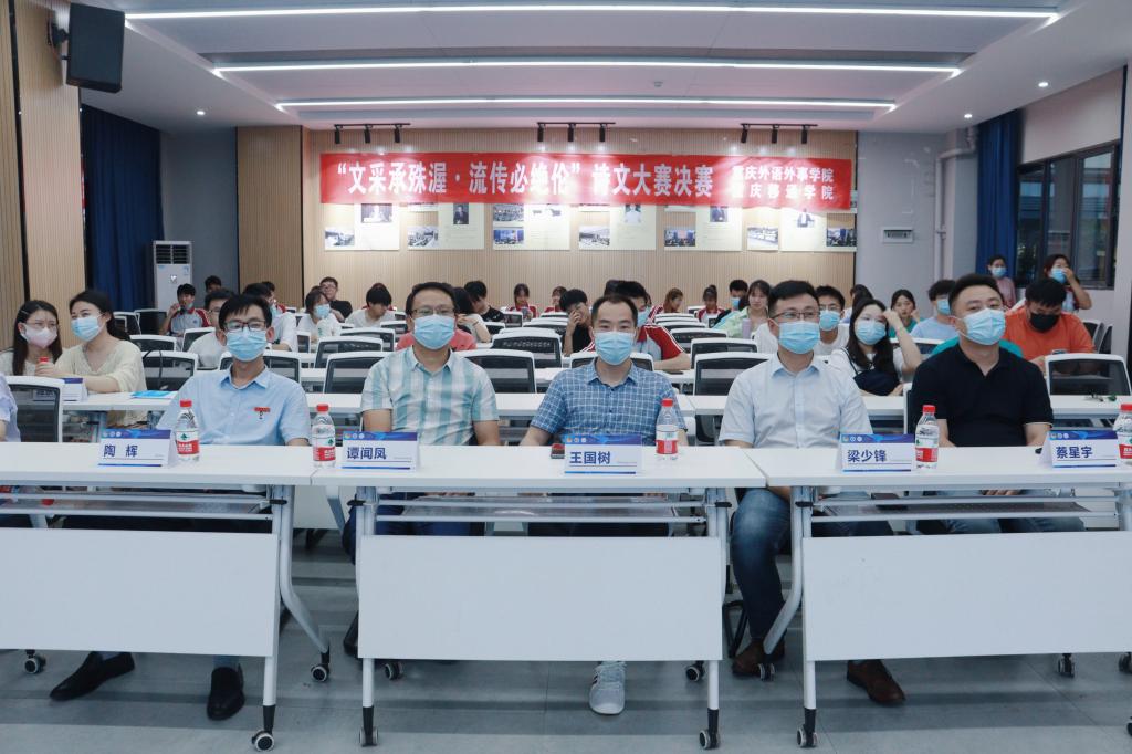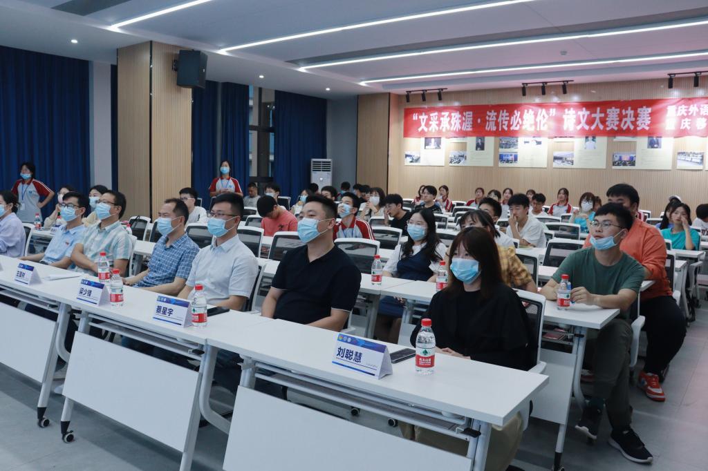 且将新火试新茶,诗酒趁年华。为响应时代号召,大力传承中国古典文化的瑰宝--诗词,2022年5月24日19:00重庆移通学院联合重庆外语外事学院于綦河书院二号楼QH2222展开了“文采承殊渥·流转必绝伦”诗文大赛决赛。出席本次大赛的有重庆外语外事学院国际汉语教育学院党总支书记谭闻凤老师、英语学院党总支书记陶辉副教授及我校通信与信息工程学院副院长王国树副教授、学生处副处长梁少锋老师、团委副书记蔡星宇老师、艺术教育中心副主任程燕老师、书院部副部长曹玉姣老师、创意写作学院刘聪慧老师、学工办主任周俊老师、辅导员老师们。