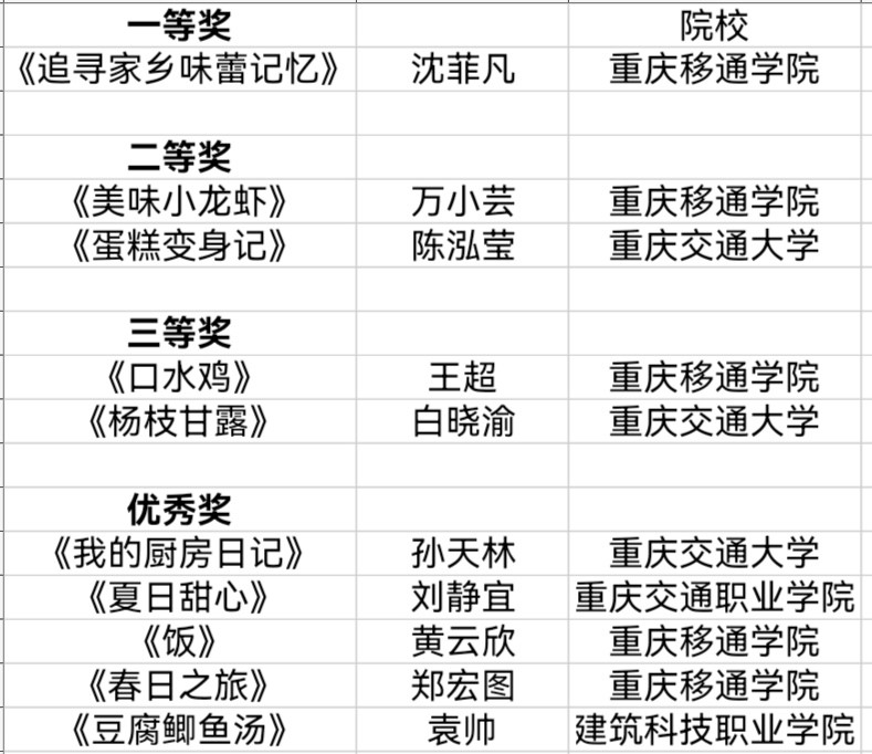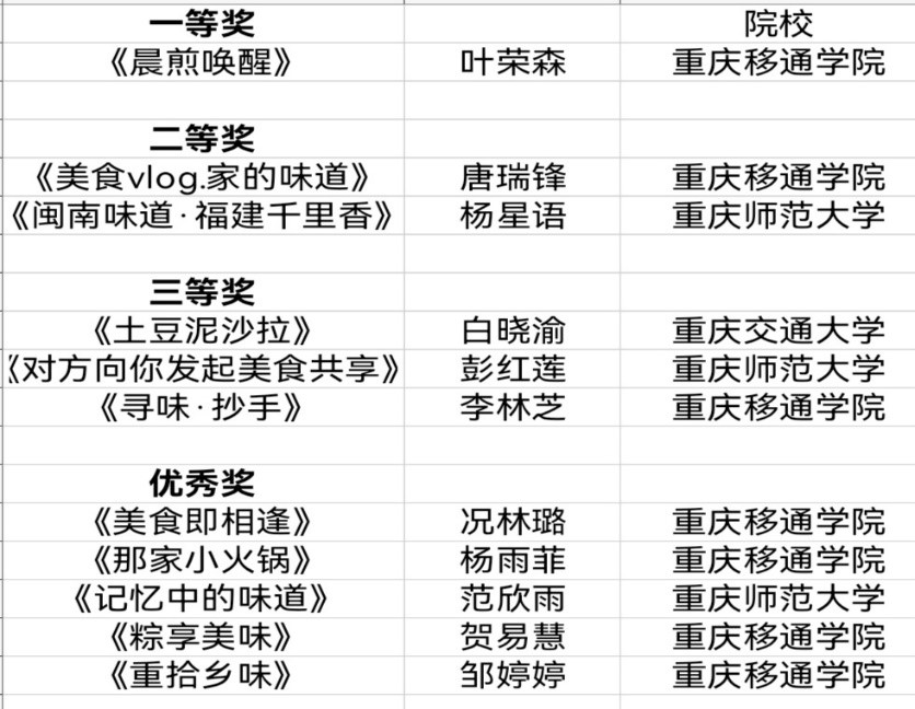第三届重庆高校美食vlog大赛个人组获奖名单