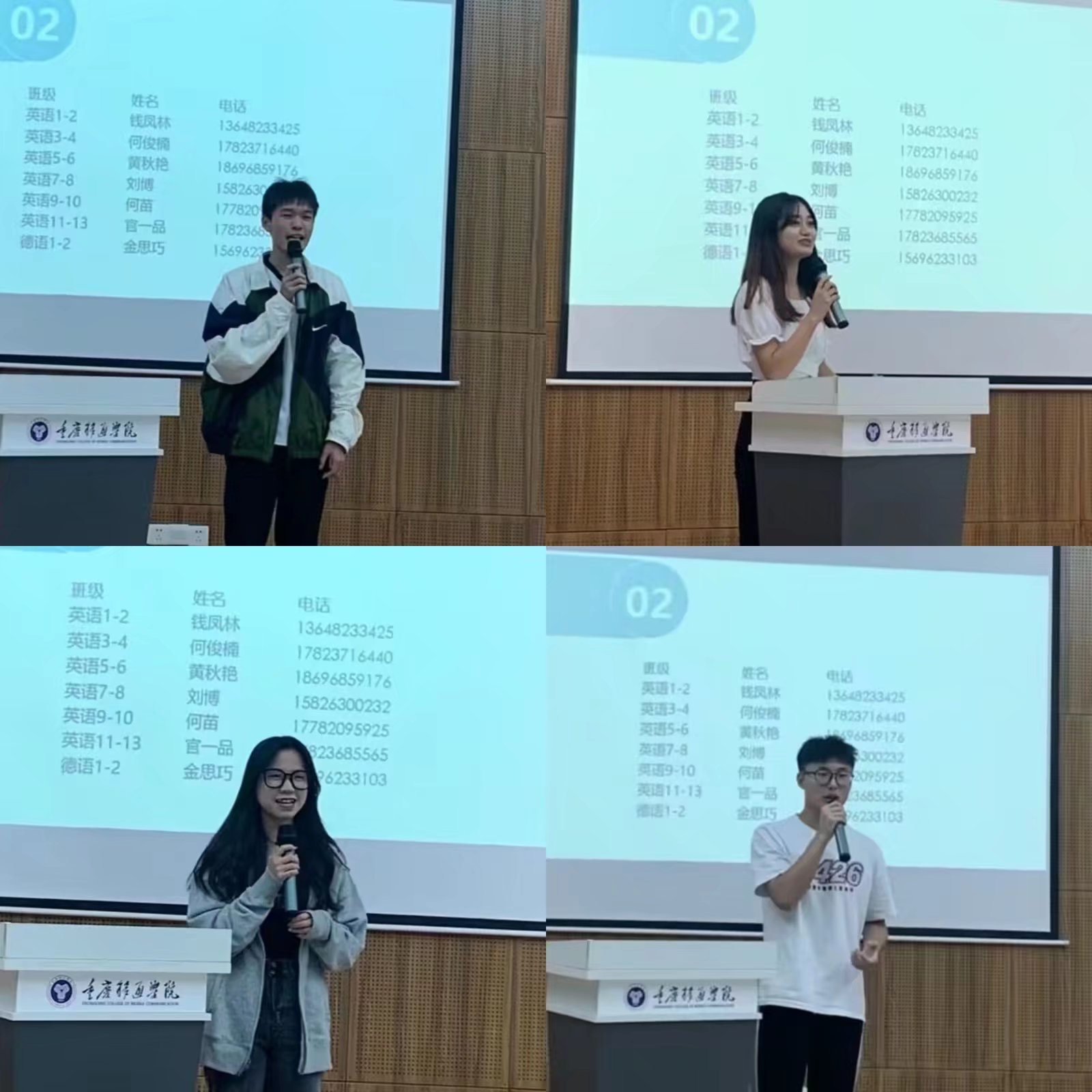 “恰同学少年,风华正茂;书生意气,挥斥方遒”,新生的到来为外国语学院增添了许多活力与色彩。最后,外国语学院团总支书记吕戈老师与外国语学院竞技体育板块指导老师阳果老师代表外国语学院对新生表达了真挚的祝愿!希望在此次老师的讲解和学长学姐的分享下,大一的新生们能够顺利的开启属于他们的完满之旅!