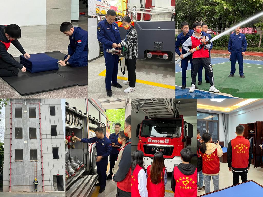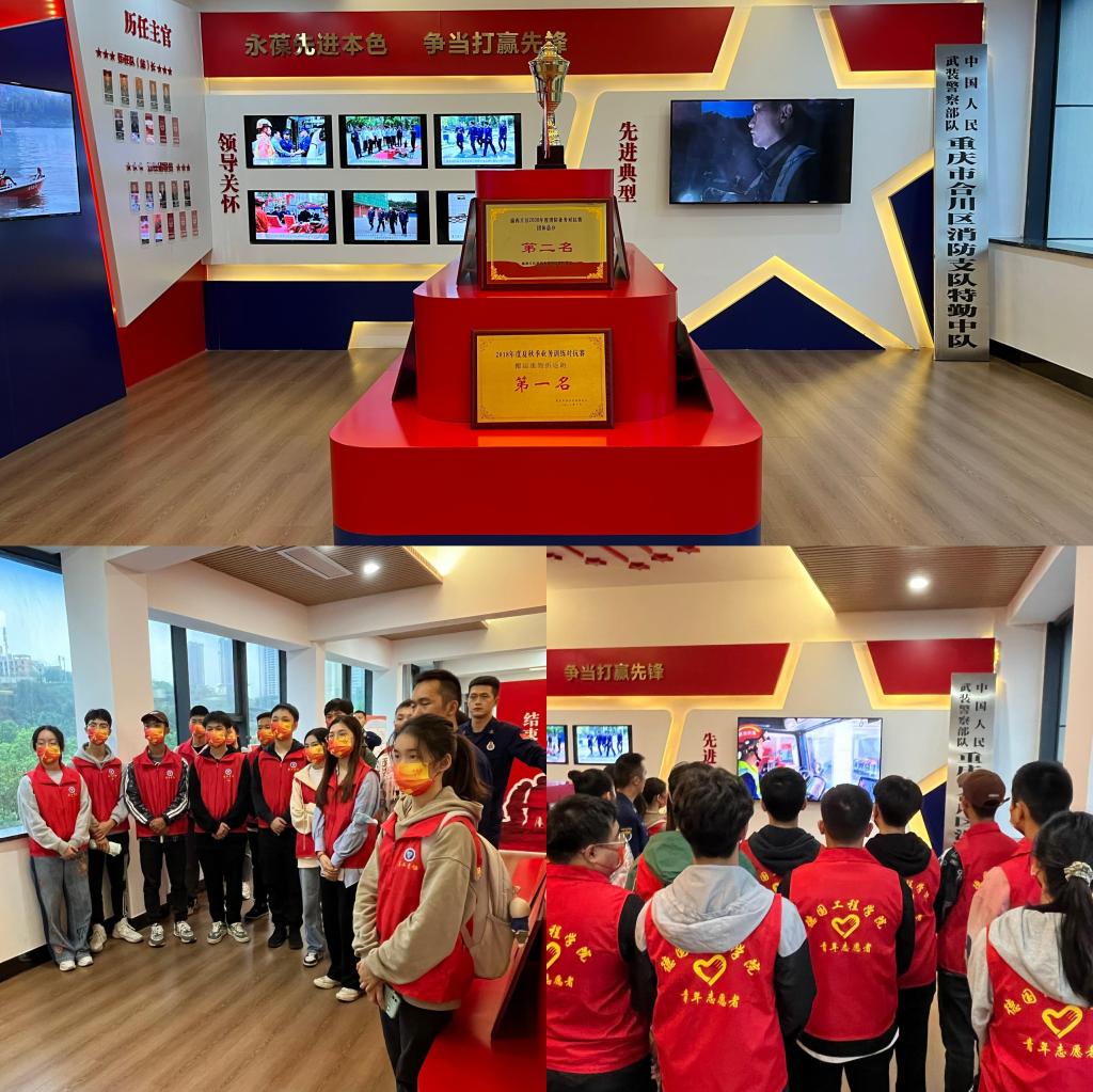 在合川区消防救援大队,参加活动的志愿者们在讲解员的带领下参观了基层消防救援站的营区库室、车辆装备,了解到合川区消防救援队伍的发展史和先进事迹;了解先进的消防通信设备,理解消防安全工作的基本理论知识,模拟救援进行一系列的真实体验。