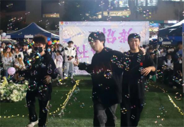 够嗨,才够青春!在“社团Give me five”主题晚会的加持下,社团招新的氛围被一度推向高潮,现场参与者的欢呼声与掌声更是此起彼伏。立体喷绘、草坪彩灯、应援荧光棒、超燃配乐,一整个hi放派氛围感拿捏住,及说唱、舞蹈、cos等精彩节目,生动展现出移通学院多样性、多层次、多维度的校园社团活动缩影,社团人们承载着使命与梦想,以青春的名义传递社团这份热爱,坚定的用高效的行动力守护移通er的兴趣与憧憬。