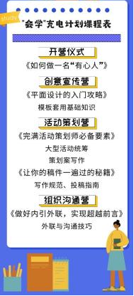 今天校学生会特别开展“会学”充电计划,我参与了活动策划板块的学习,由经验丰富的学长学姐给我们传授经验,以及一些相关的注意事项。这次的培训,给了我一个方向,让我知道从什么方面入手,如何完成一次活动策划。对于写新闻稿和投稿件也让我有了清楚的认识,对于稿件的投稿都要有格式要求,我们要尽量做到熟悉要求,一定不在稿件格式上出错,努力做到一遍过。