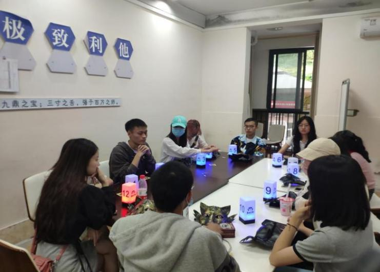 早上9点,狼人杀活动正式开始,为保障此次活动顺利进行,首先由活动主持人为大家讲述游戏规则,12名同学被分在两个阵营开始展开演技和表达的pk。