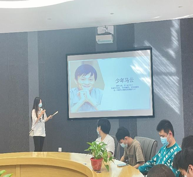 读一本好书,了解一个有意义的故事,分享一段诗意的情怀,期待你字里行间的温度,遇见更好的自己。学生分享环节,杨桃同学和王雅一同学分享的书籍是《马云和阿里巴巴》,杨桃同学介绍马云跳出舒适圈,不断开拓创新,从而成功创建阿里巴巴,而王雅一同学则介绍了马云在创建阿里巴巴前的成长经历与求学经历。让同学们认识到了成功不仅仅需要知识的储备,更需要不断从社会中积累经验,才能更好的立足于社会。