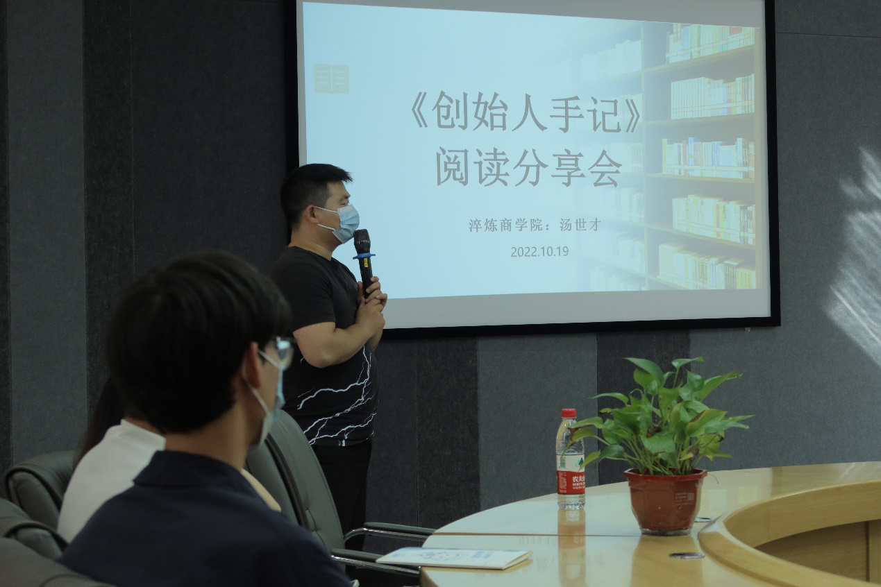分享会的最后,汤世才老师分享书目-《创始人笔记》,汤老师从 “天”“地”“人”三个部分来给同学们介绍季琦创始、发展、经营企业的重要思考和经历,包含他经历的“至暗时刻”,对中国服务业做出的贡献。在介绍的最后汤老师也给同学们提出关于创业的建议,让同学们更加明确自己未来的创业规划。同时告诉我们要有坚定的信念,执着的梦想和摸黑前进的勇敢,不然无法在艰难困苦的道路上走远。