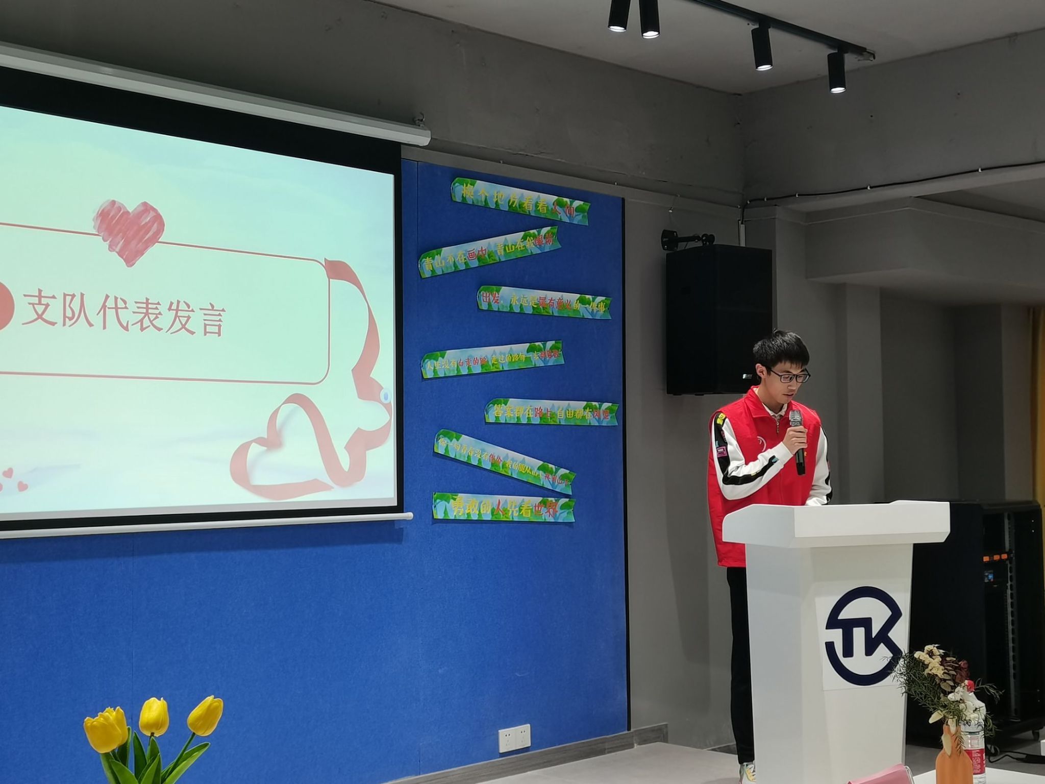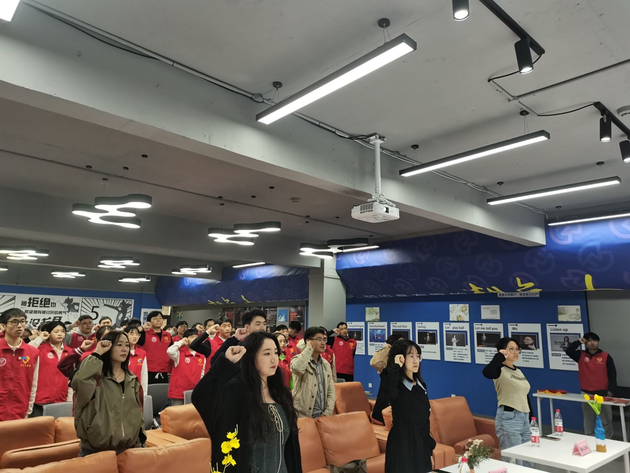 紧接着孙怡书记为各专项支队长进行了授牌,“太阳花亲情驿站”关爱双职工子女志愿服务专项支队长赵伟杰做支队代表发言,“党青之光”理论宣讲志愿服务专项支队韩宁大同学带领参会人员宣誓,声音嘹亮坚定,在未来学院全体志愿者将秉承宣誓内容履行职责、不断向前。