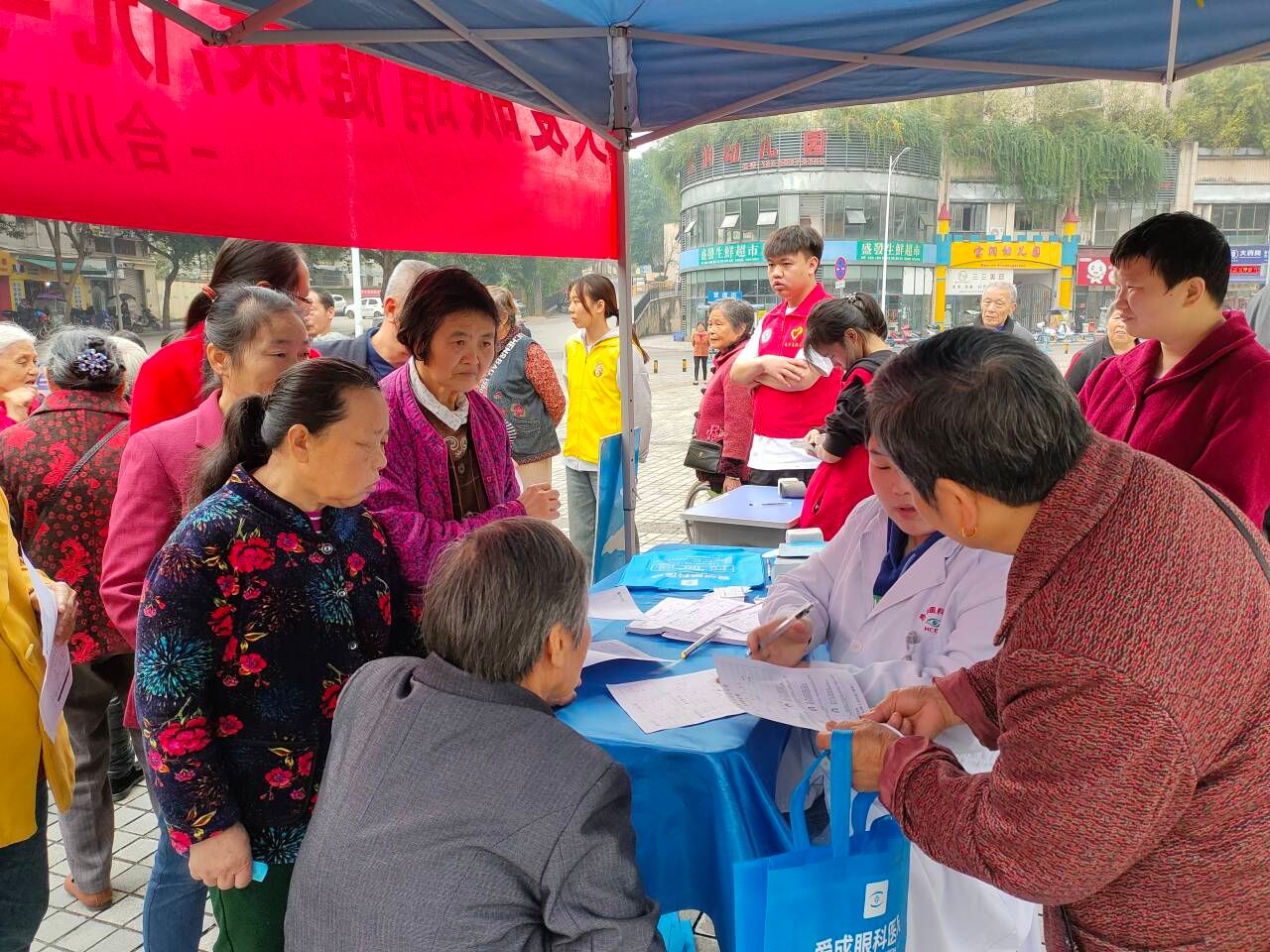 残疾人事业是中国特色社会主义事业的重要组成部分。党的十八大以来,以习近平同志为核心的党中央坚持以人民为中心的发展思想,坚持弱有所扶,保障残疾人平等权利,增进残疾人民生福祉,推动残疾人事业发成疾人事业发展取得历史性进步和成就。为保障残疾人士的身体健康,促进其积极融入社会,2023年11月10日,重庆移通学院淬炼商学院青年志愿者协会“向阳而生”筑梦助残志愿服务专项支队、淬炼商学院2023级两年制市场营销21-24班协同合川区三好社区、爱尔眼科医院以及天程口腔医院在合川区宝润国际广场开展了助残健康体检活动。