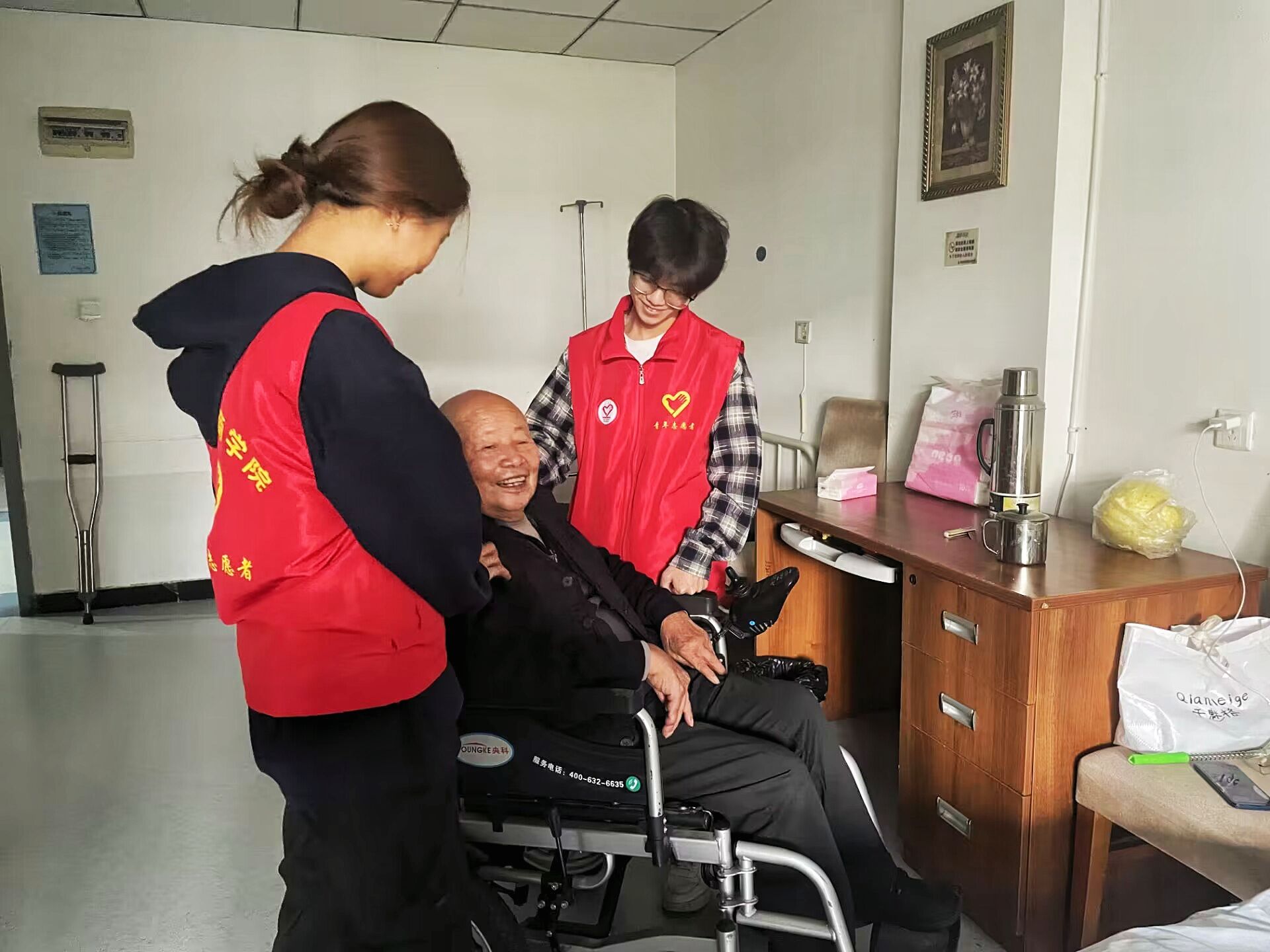志愿者们与老人们亲切交谈,陪着去散步,给捶捶背,揉揉肩。认真倾听老人们在荣军院的生活情况,在点滴细节上关怀老人,给老人们带去心灵上的温暖。
