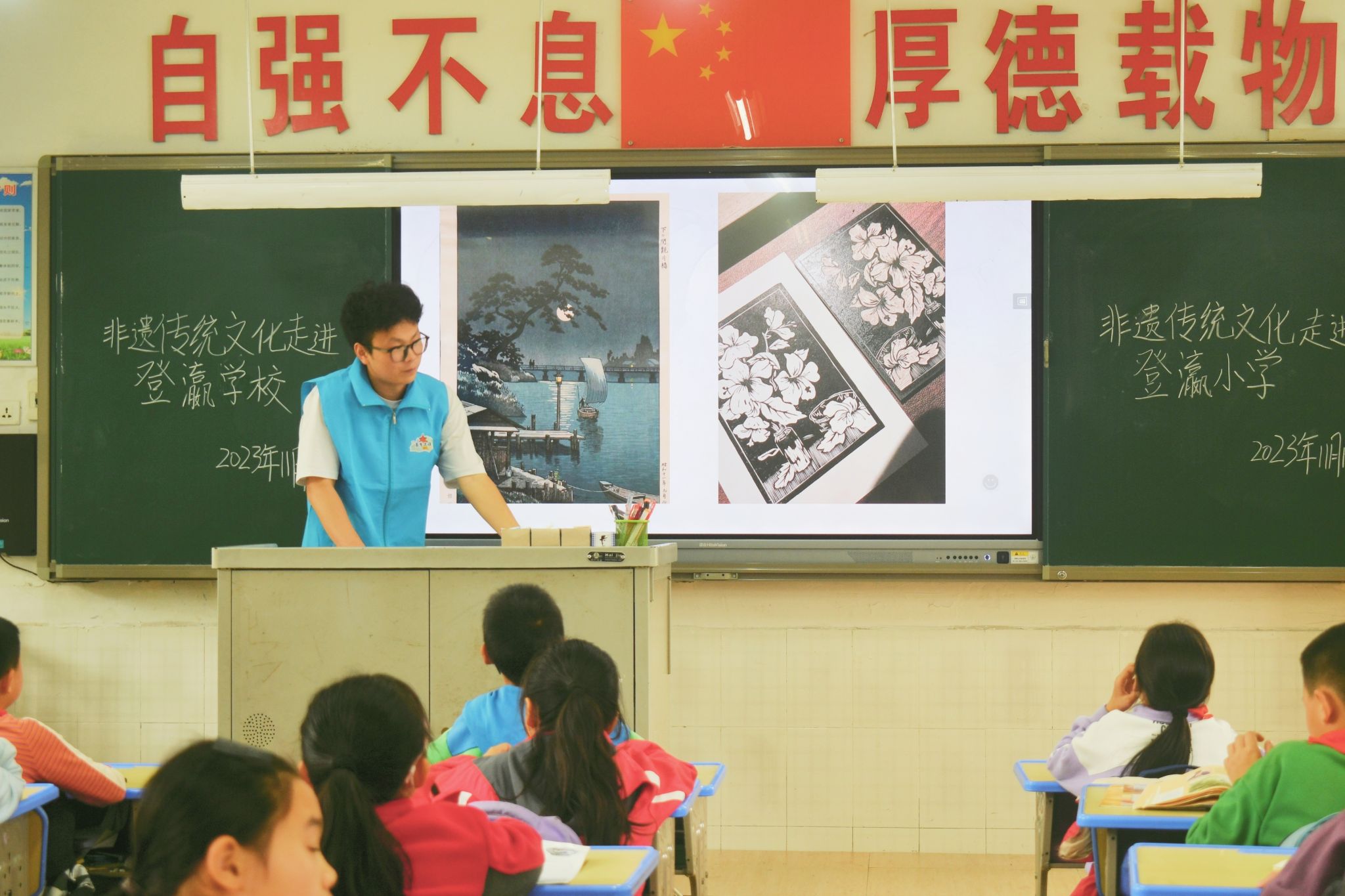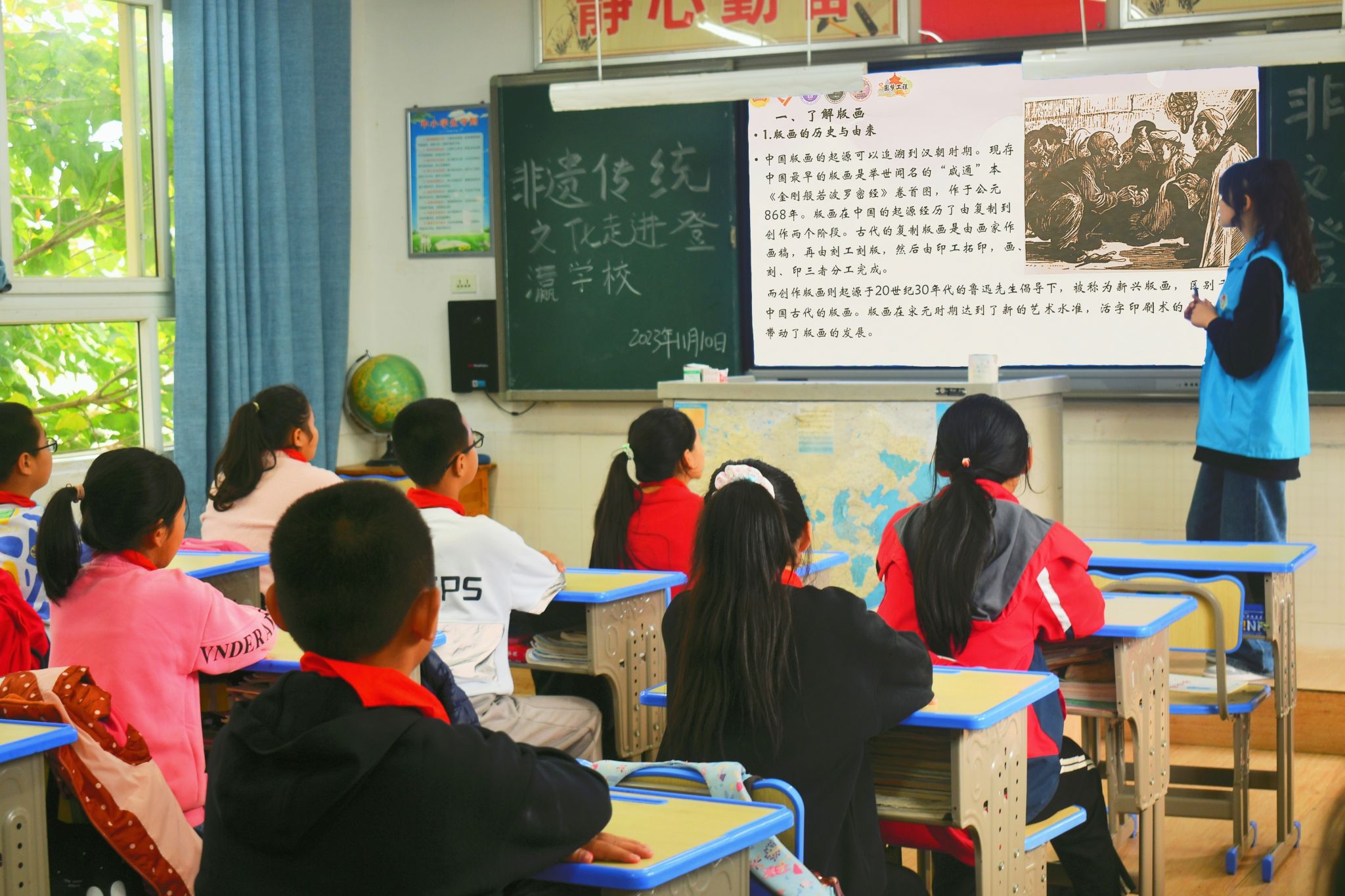 2023年11月10日,大数据学院青年志愿协会志愿者进入登瀛小学积极开展“小手掌绘出大梦想”为主题的版画入校宣讲活动,借助圆梦工程这个广大的平台弘扬中华优秀传统文化,丰富学生文化生活,促进学生健康成长。
