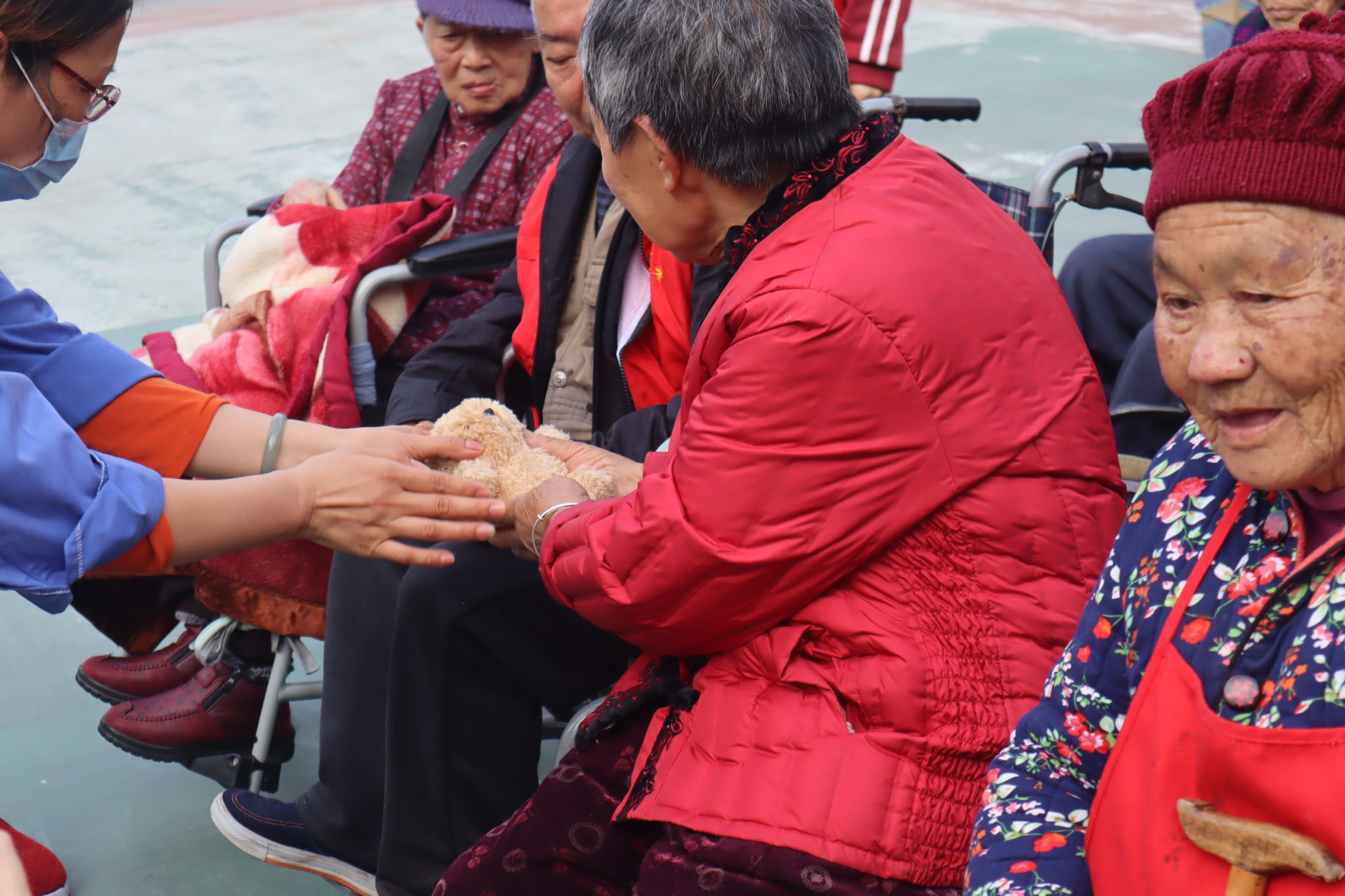 活动接近尾声,志愿者们和老人们共同折纸飞机,锻炼了老人们的动手能力,纸飞机带着志愿者们对老人们的祝福向远方飞去。老人们饱经沧桑的脸上浮现出笑容,顺着皱纹平缓的铺散开,慈祥而又温暖,志愿者们的到来给老人们带来了心灵上的慰藉,使老人们感受到了温暖和关爱。活动结束后,志愿者们与老人们继续畅聊着,主动给爷爷们拍照,在按下快门的一瞬间,老人们洋溢着幸福的笑脸就此记录下来。此后志愿者们将老人送回去,并同他们道别,老人们纷纷表示:“看见这么多小朋友,我们感到很开心,希望下次小朋友们还能过来”。