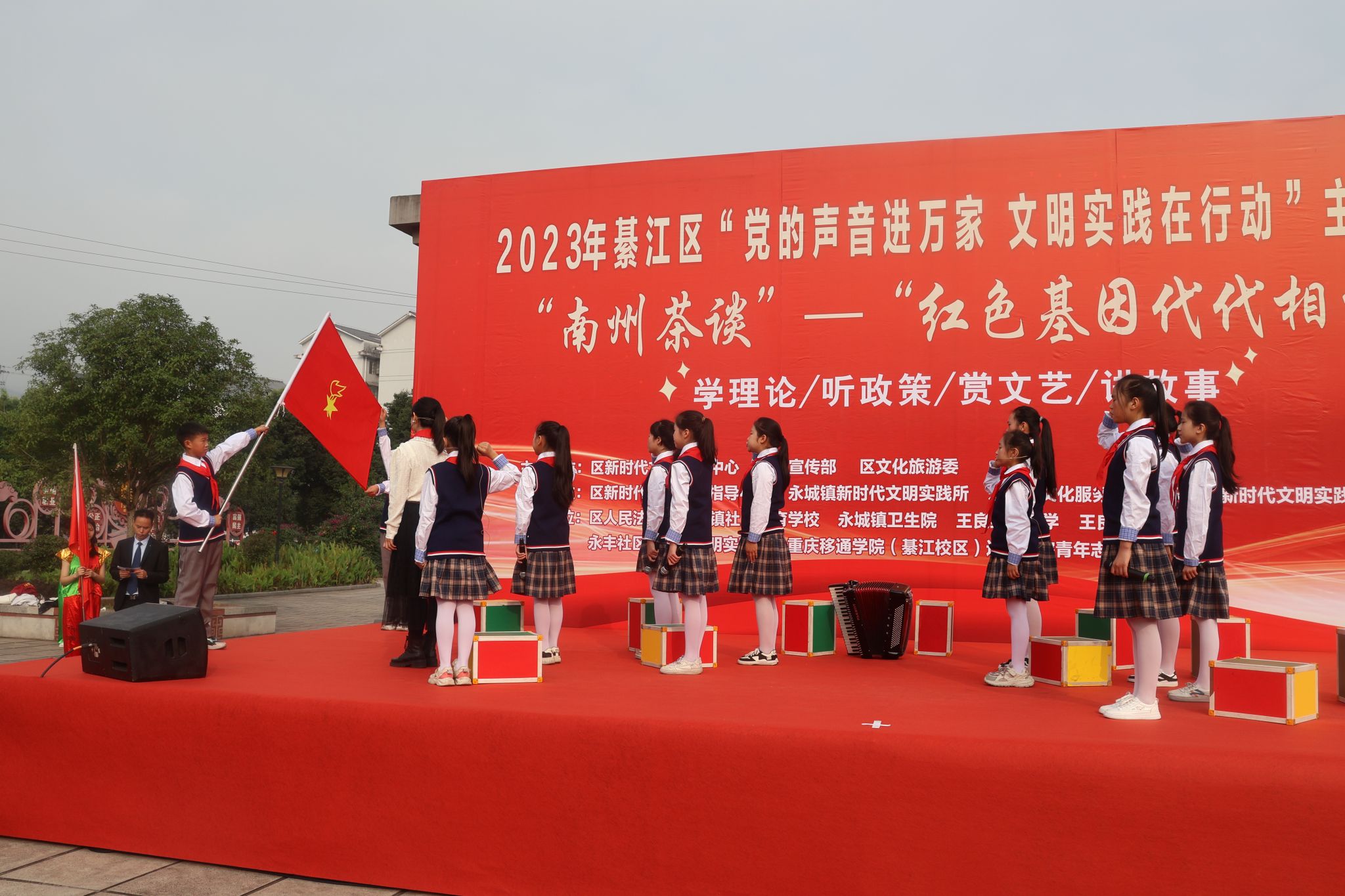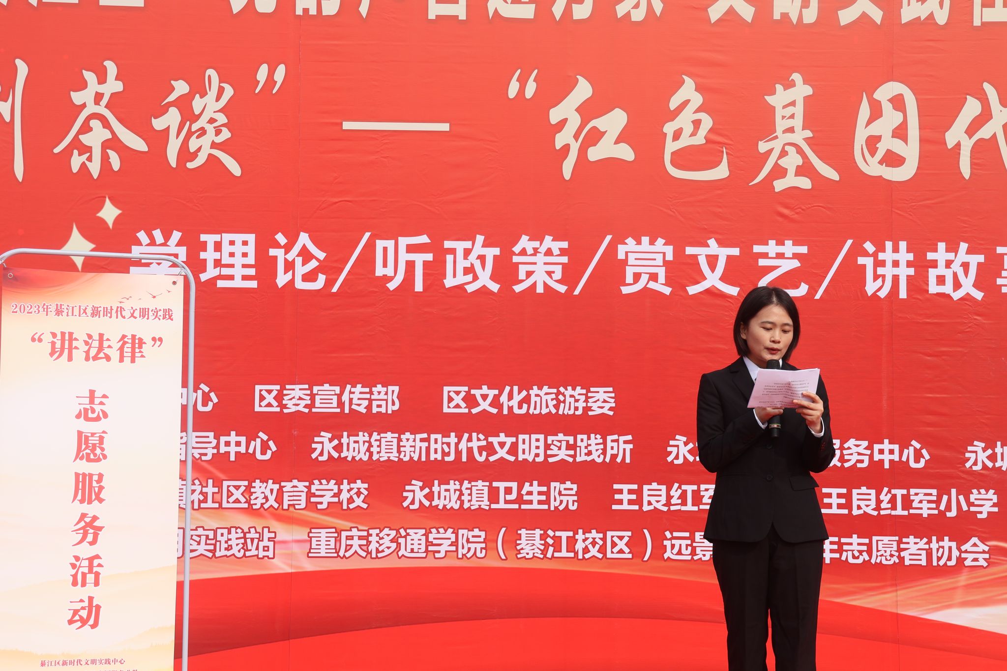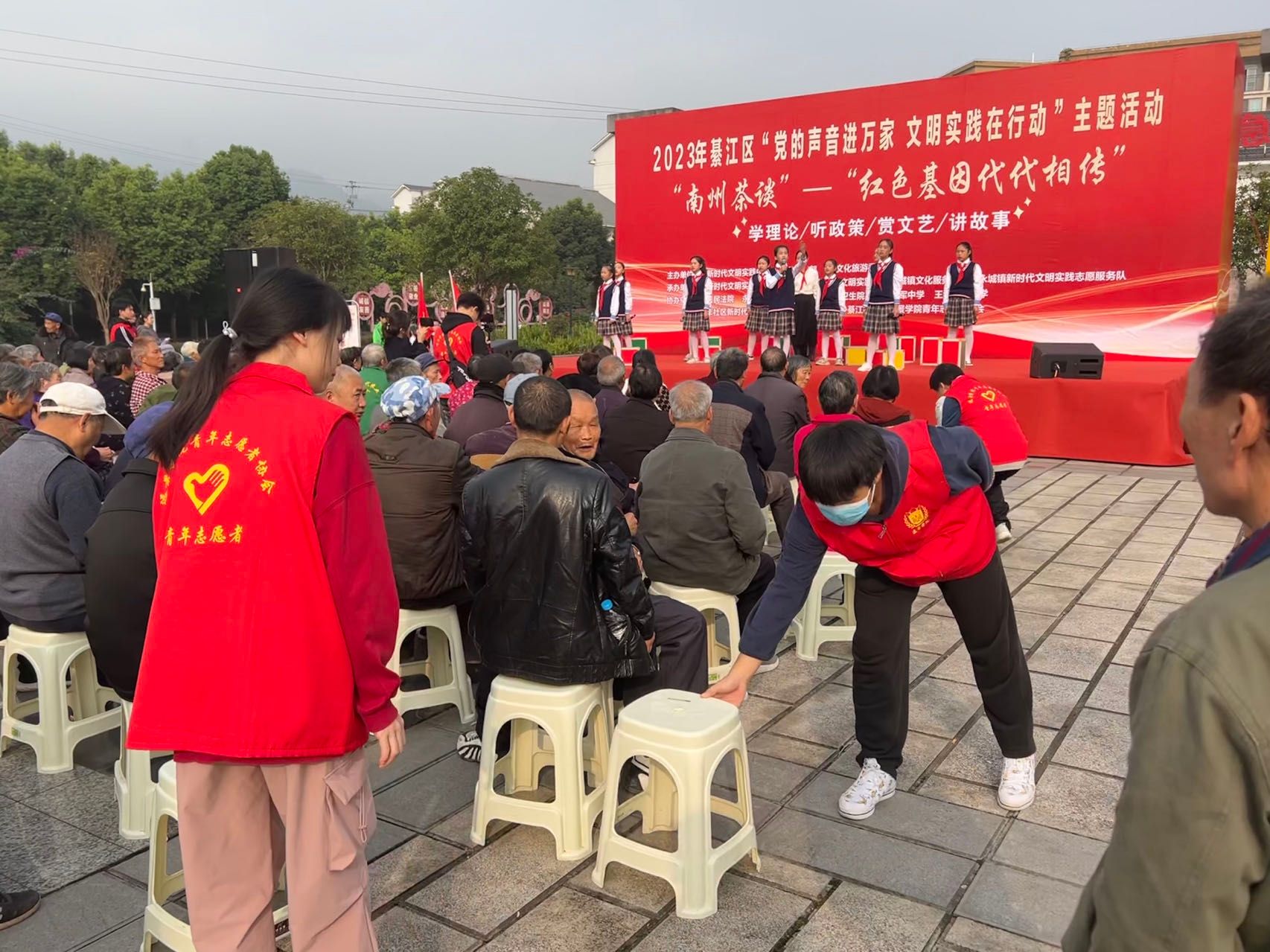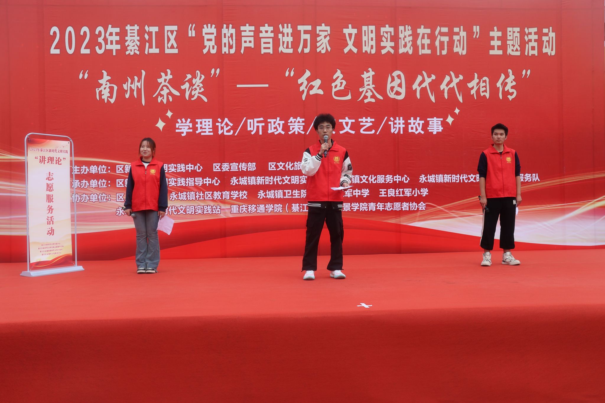 红色基因代代相传,远景学子走进“南州茶谈”。2023年11月10日星期五,重庆移通学院(綦江校区)远景学院青年志愿者协会携手永城镇人民政府于永丰广场举办“南州茶谈”活动。该活动旨在高度契合党中央提出的以爱国主义为核心的民族精神、以改革创新的时代精神。以重庆源远流长的茶馆文化为基础加以创新弘扬红色精神,以多元一体的活动形式,将爱国情怀同广大人民群众有机结合。远景学院青年志愿者协会积极服务该活动,践行实践,走入人民群众中,服务社会,彰显志愿者风采。