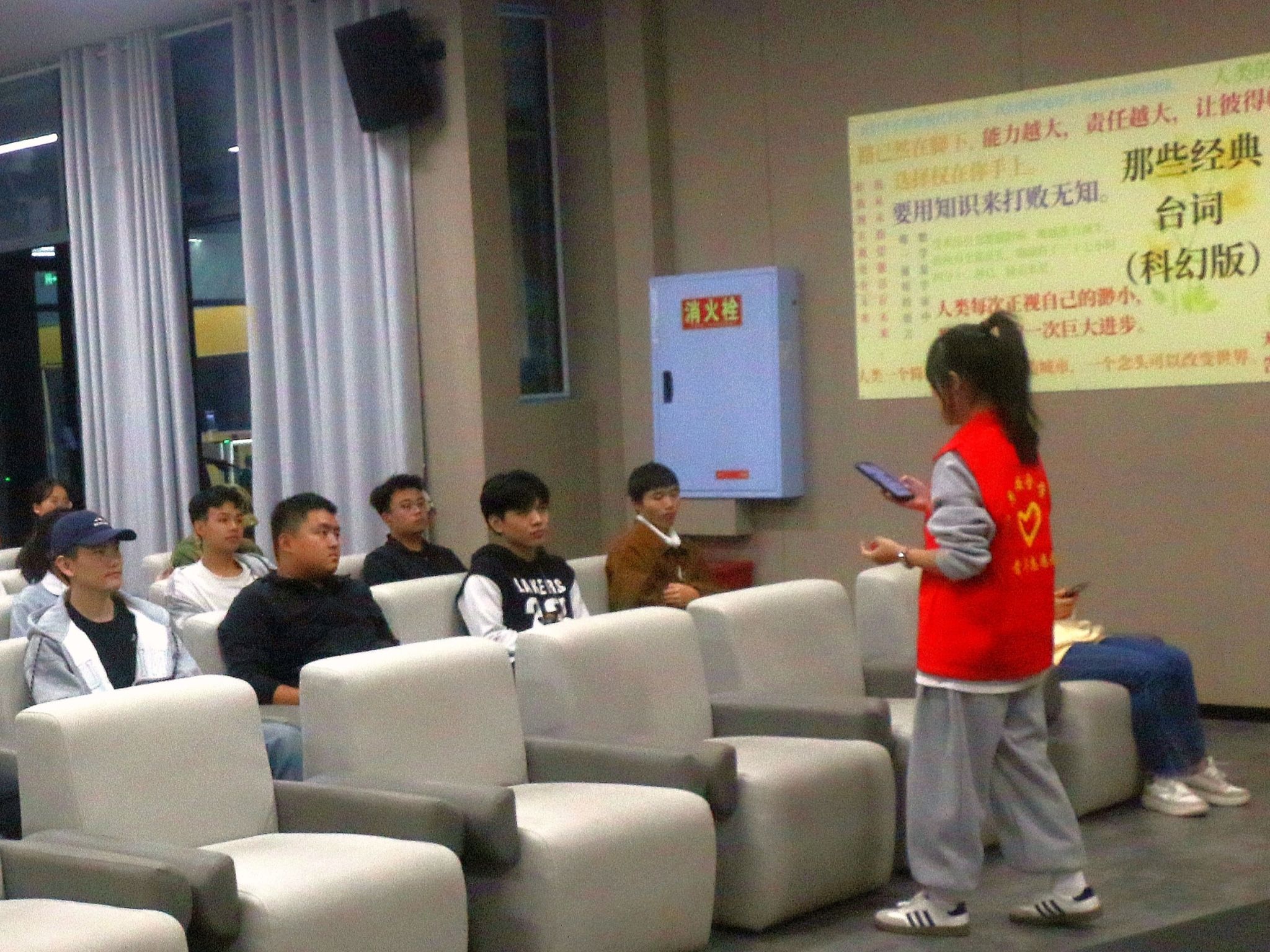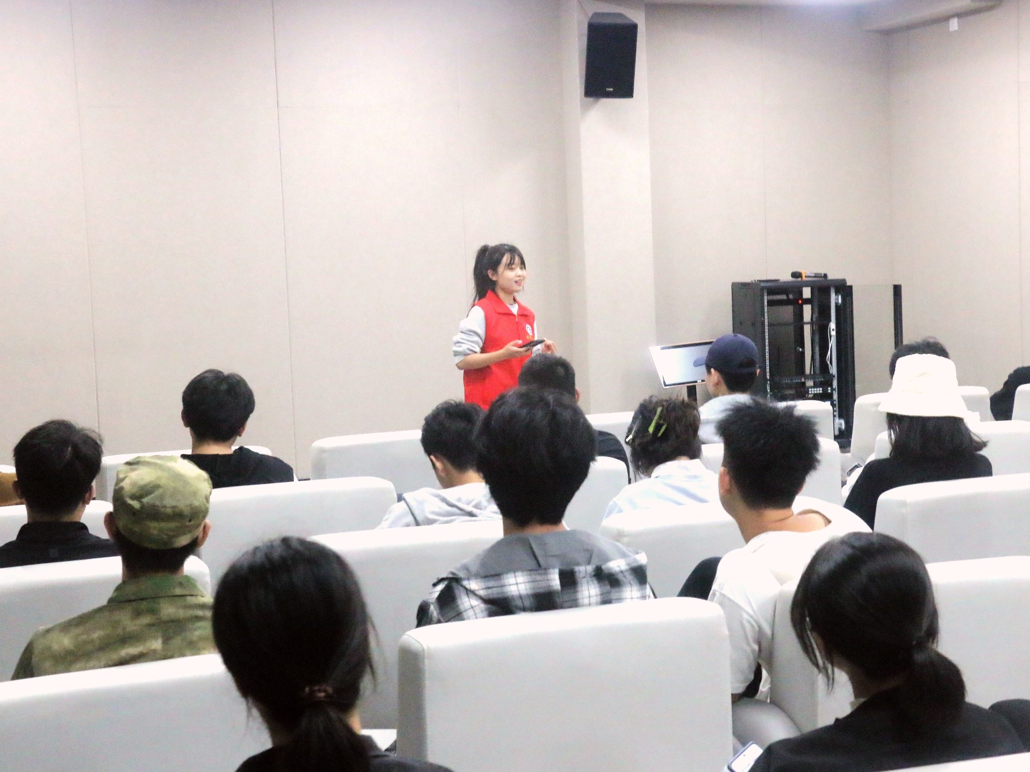 活动开始前,“綦河卫士”支队长夏雨欣带领志愿者有序组织同学们入座,活动开始,由志愿者徐丽莎向同学们讲解垃圾分类以及与环保关的知识。志愿者徐丽莎的宣讲通俗易懂、充满活力,神情放松,面带微笑,感染着每一个在场同学。