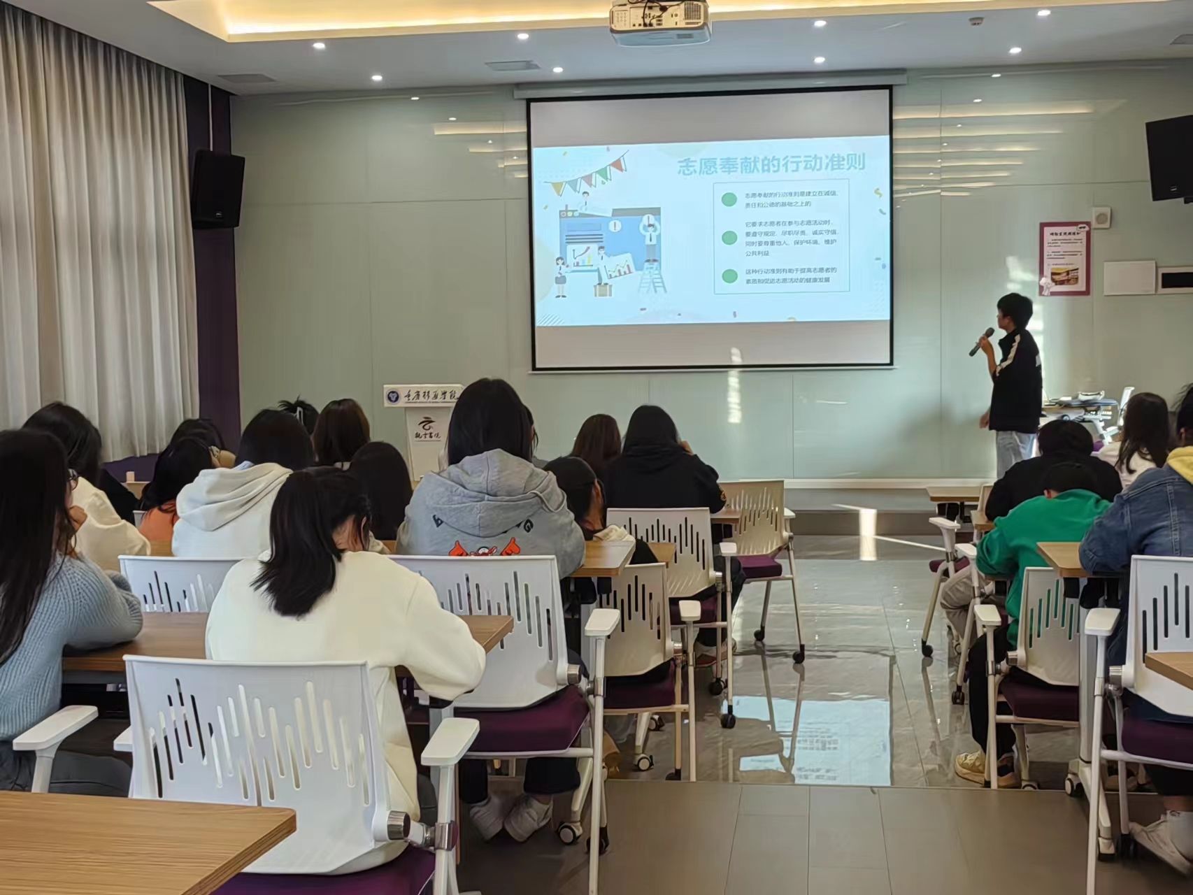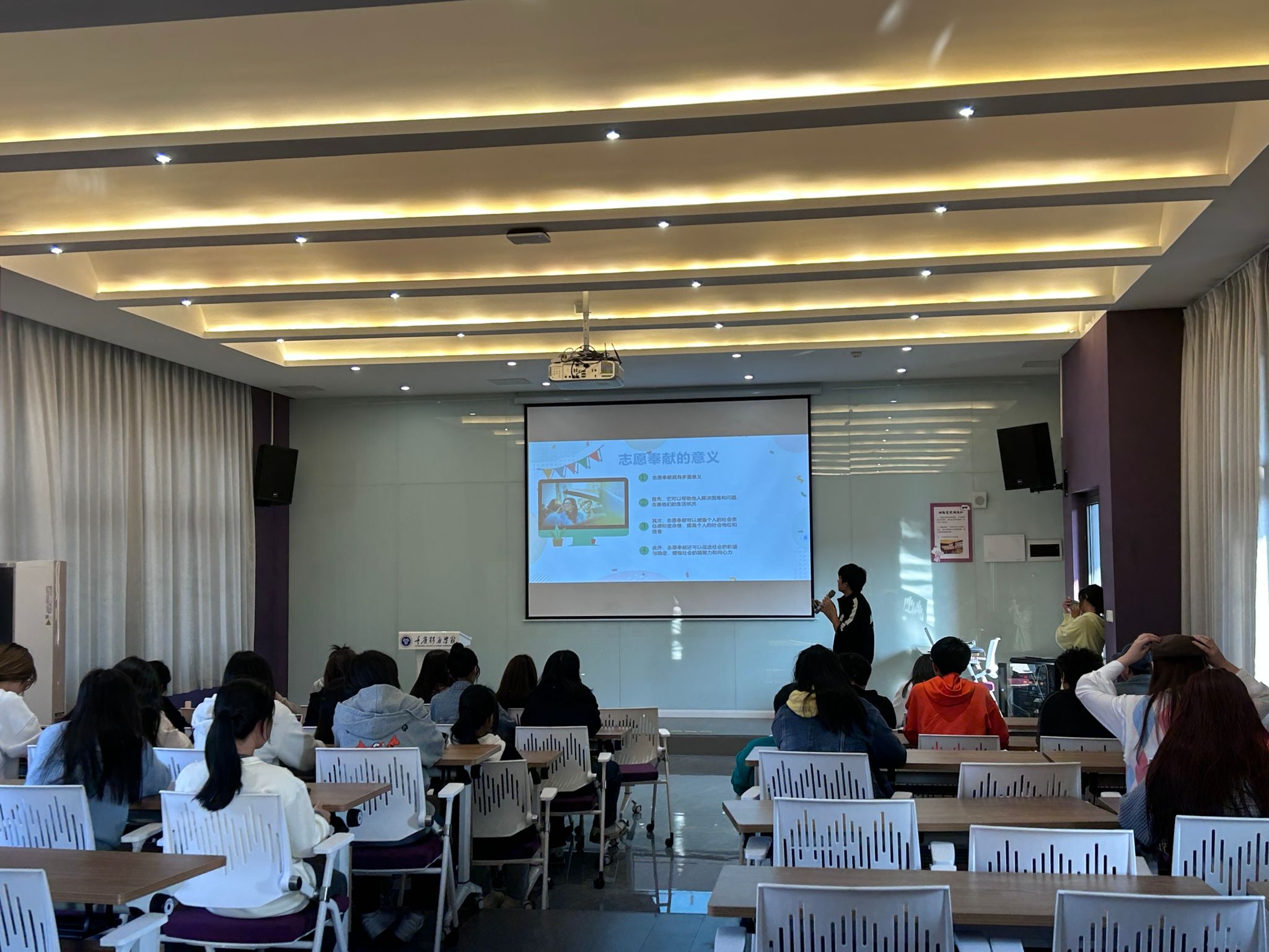 在不断地鼓励下,现场气氛逐渐活跃起来,同学们对志愿服务开始充满了期待与希望。为此,宣讲人为同学们提供了六种途径参与志愿活动,如参与慈善组织与志愿者协会、参与义务劳动、在医院和医疗机构做志愿服务、参与社区建设、参与学校和教育机构当志愿活动,参加自然环境和公园的志愿活动等。同时,结合经验,宣讲人告诉同学们要抓住空闲时间,从基层出发,脚踏实地,去奉献人生。