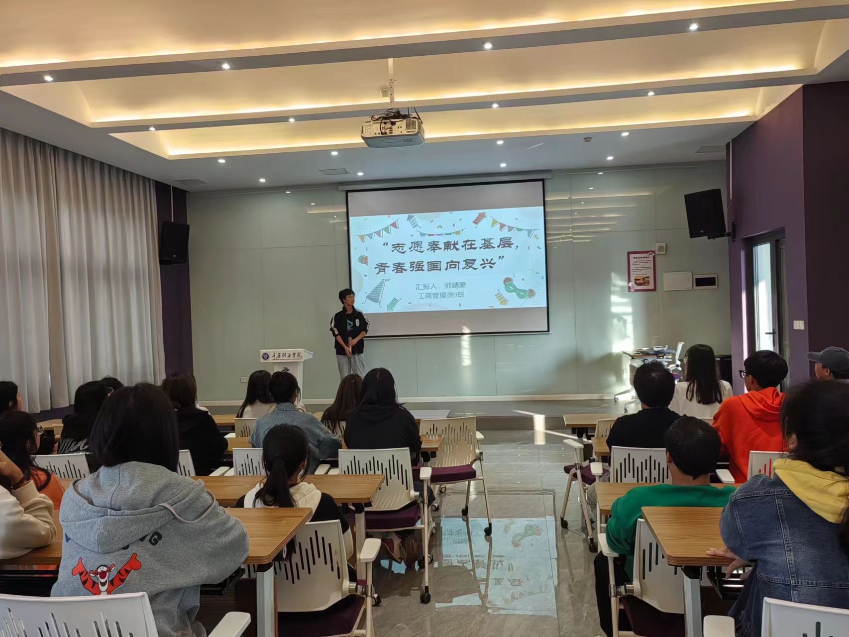 响应时代号召,行青年之举。为更好地宣扬“奉献、友爱、互助、进步”的志愿精神,做一个有志气、有骨气、有底气的中国青年,加强同学们的社会责任感与幸福感,激励全体工商管理类9班成员参与社会基层服务志愿活动。因此,重庆移通学院淬炼商学院青年志愿者协会携2023级工商管理类9班于2023年11月12日,在观云书院功能室开展了“志愿奉献在基层,青春强国向复兴”的主题宣讲活动。