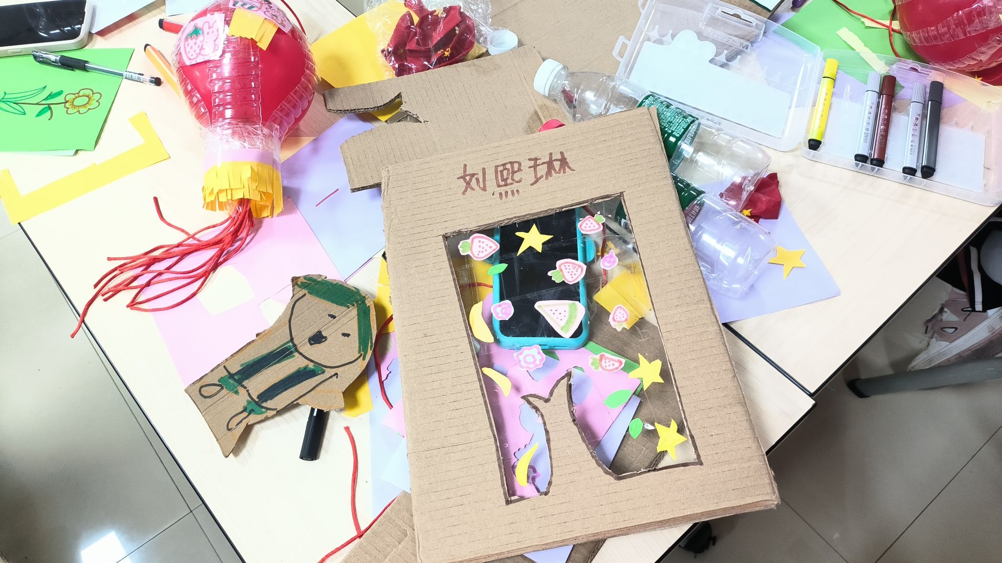 智慧在指间流转,幸福在手中跳跃。有了之前的破冰活动,小朋友在动手的过程中,会一边交流一边制作,大家人人动手,积极参与,认真对待,充分发挥自己的动手能力。一个小时很快就过去了,一款款精美的作品呈现在眼前,当小朋友看到自己的劳动成果,每个人都欣喜万分,露出兴奋、愉快的笑容,拿起彼此的作品相互鉴赏、爱不释手。