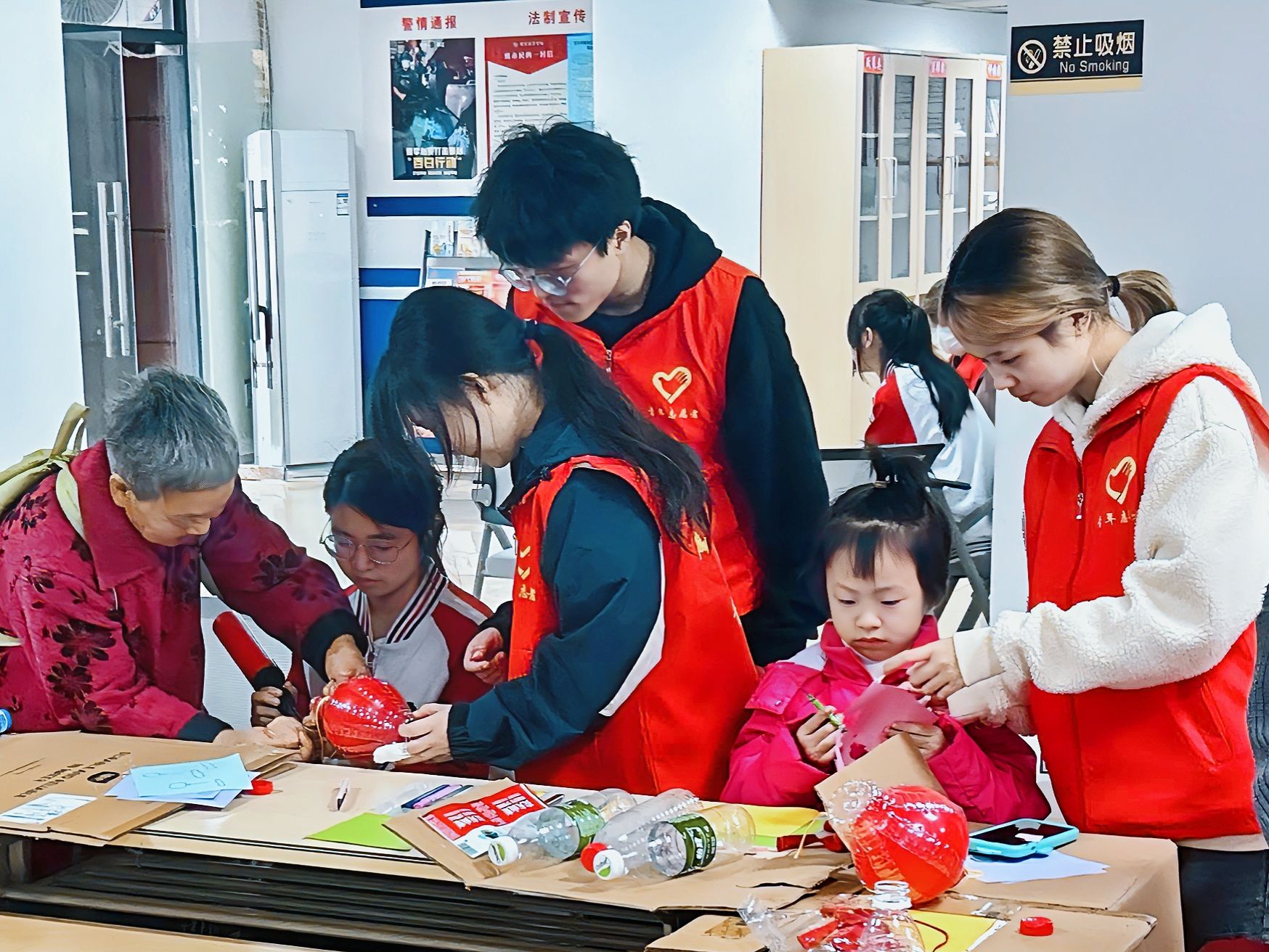 为提高小朋友的环保与创新意识,2023年11月12日的早晨,完满课堂志愿服务专项支队的志愿者们前往枣园社区,开展了“奇思妙想,变废为宝”的环保手工活动。此次活动参与人数40余人,目的是让小朋友们通过自己的努力将废弃物转化为有用的资源,提高小朋友的环保意识,从而减少浪费。