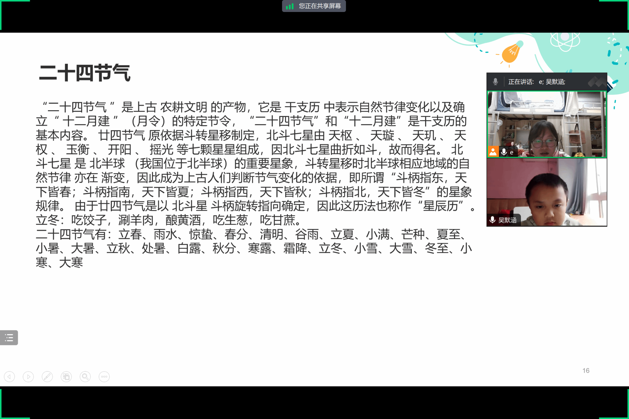 冬日的寒冷并没有阻挡志愿活动的进行,小朋友们积极与志愿者们分享立冬后的飘零落叶以及与小伙伴在公园里欢快玩耍的趣事,用一张张在冬日欢笑的照片展现出他们的快乐。志愿者们带领小朋友们探讨冬日的乐趣,感受祖国的每个季节,引导小朋友们感受到祖国大好河山以及春夏秋冬的季节更替。
