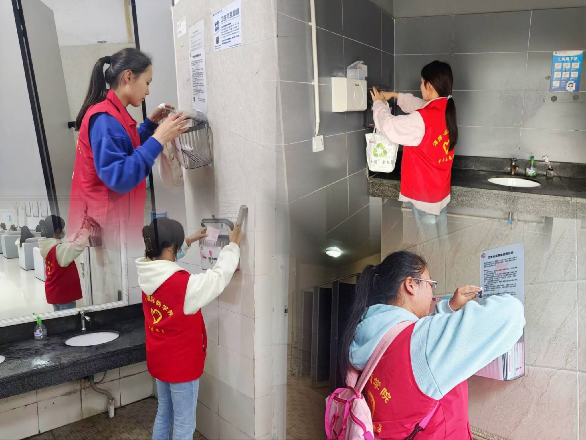 呵护每个女孩们在成长中悄然开花,“SHE”关爱女性志愿服务专项支队一直在路上。经过一个小时的努力,志愿者们成功完成了重庆移通学院南校区的卫生巾补充活动,再教学楼的各个楼层都充满了爱的味道,让呵护无微不至,让女性体验到再次被呵护的感觉,为全校女性师生提供极大帮助,同时卫生巾补充活动对于活动志愿者来说不止是一次志愿服务活动,通过活动也能更加理解和明白关爱女性的意义。卫生巾互助盒提倡大家“取一还一,爱与互助”的原则,让爱的力量从一片小小的卫生巾开始,传递到更多女孩的手里。