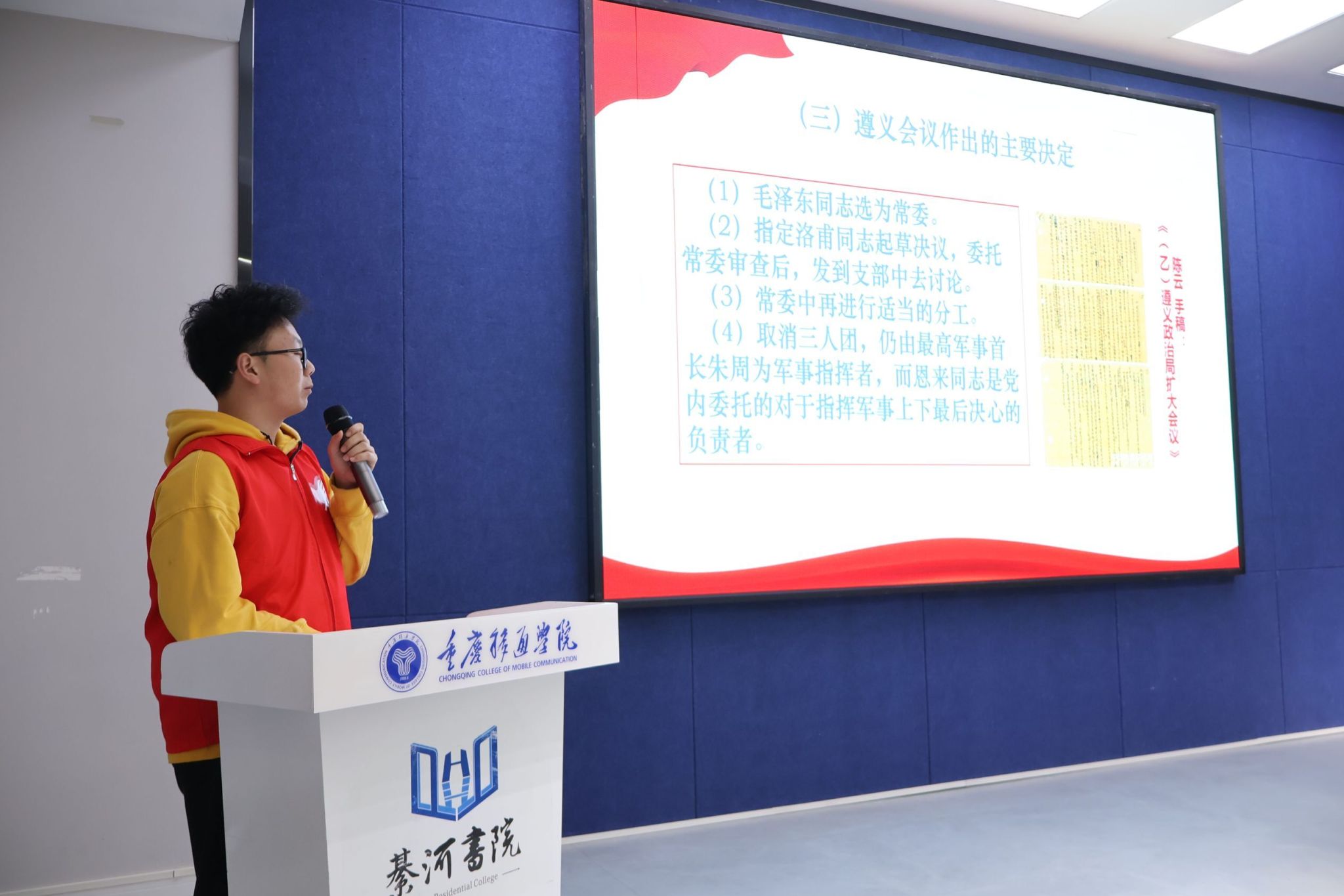 为激发人们为祖国的繁荣富强而努力奋斗的信念和决心,弘扬爱国主义精神,讲好遵义会议精神大数据学院青协“綦心传遵义志愿宣讲团”于2023年11月15日在2023级数字媒体技术以“弘扬爱国主义精神,蛹做时代弄潮”为主题的年机会上,开展遵义会议精神宣讲。
