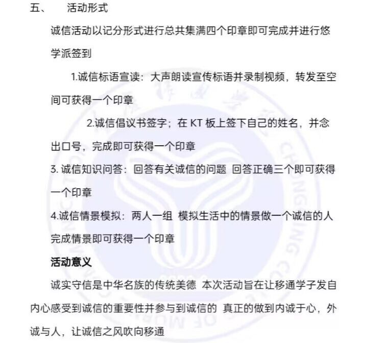 此次诚信主题策划征集活动不仅是推进我校构建青年信用体系建设的一次举措,更是一次引导和教育同学们探索和思考诚信问题的过程,我们希望通过这个活动激发同学们的创造力和想象力,让他们从不同的角度思考诚信的价值。青年诚信的意义在于青年诚信是个人品格的体现,它能够帮助青年树立良好的形象,赢得他人的信任和尊重,让我们共同努力,营造诚实守信的美好校园!