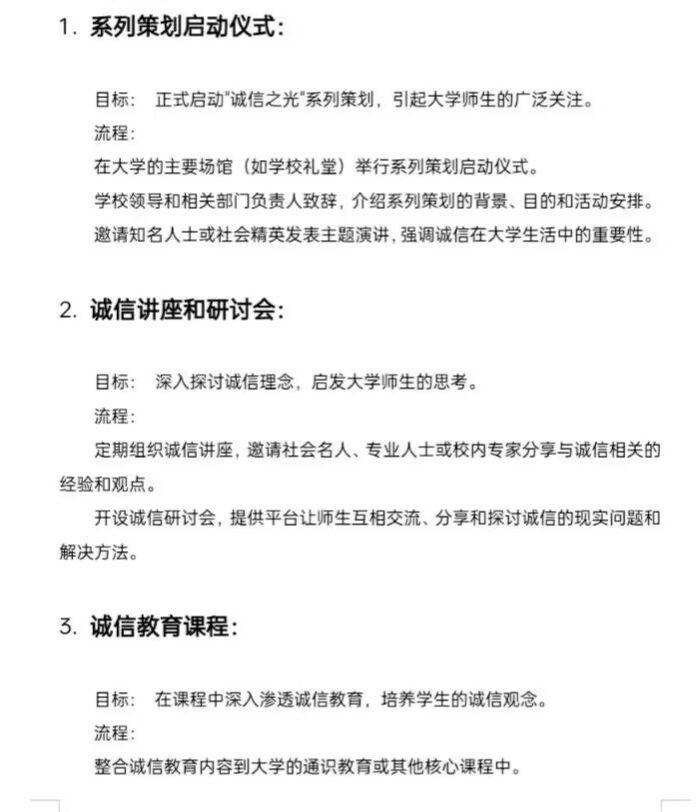 青年信用体系建设是社会信用体系建设的重要组成部分,是广大青年践行社会主义核心价值观的制度化载体,是共青团深化改革,引领和服务青年的重大创新举措。为了让同学们对青年信用体系有更深刻的理解,守望诚信志愿服务专项支队于2023年11月15日进行了有关诚信主题策划案征集活动,活动持续了六天,一直到活动结束,我们收集到了60份不同的策划案,正如“一千个人眼中有一千个哈姆雷特”一样,每一位参与者都有自己的想法,后续我们也会邀请老师对投稿的策划案进行评审,最终选出一批具有创新性、代表性、可推广的诚信活动。入选的活动将在校园内进行推广,为校园诚信建设提供有力支持。