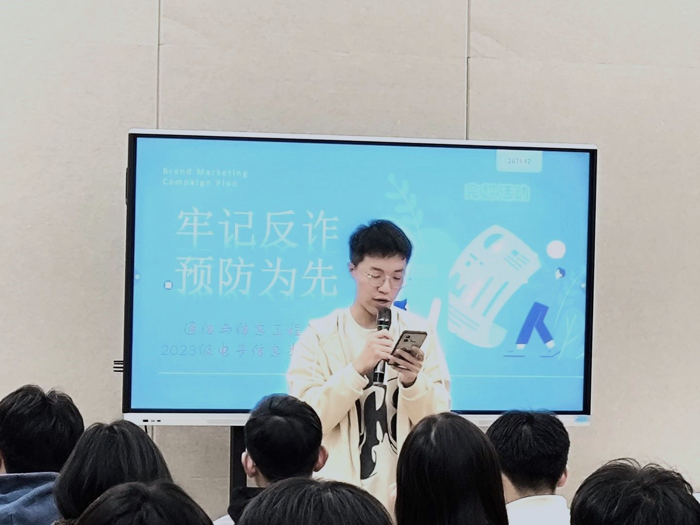 为提高群众反诈意识,共同建造反诈防线。2023年11月15日,重庆移通学院通信与信息工程学院2023级电子信息类7班团支部和“飞鹰”反诈宣传志愿服务专项志愿支队在瀛溪书院很正式研讨室开展反诈防骗宣传活动。此次活动参与人数45余人,受益人数100余人。