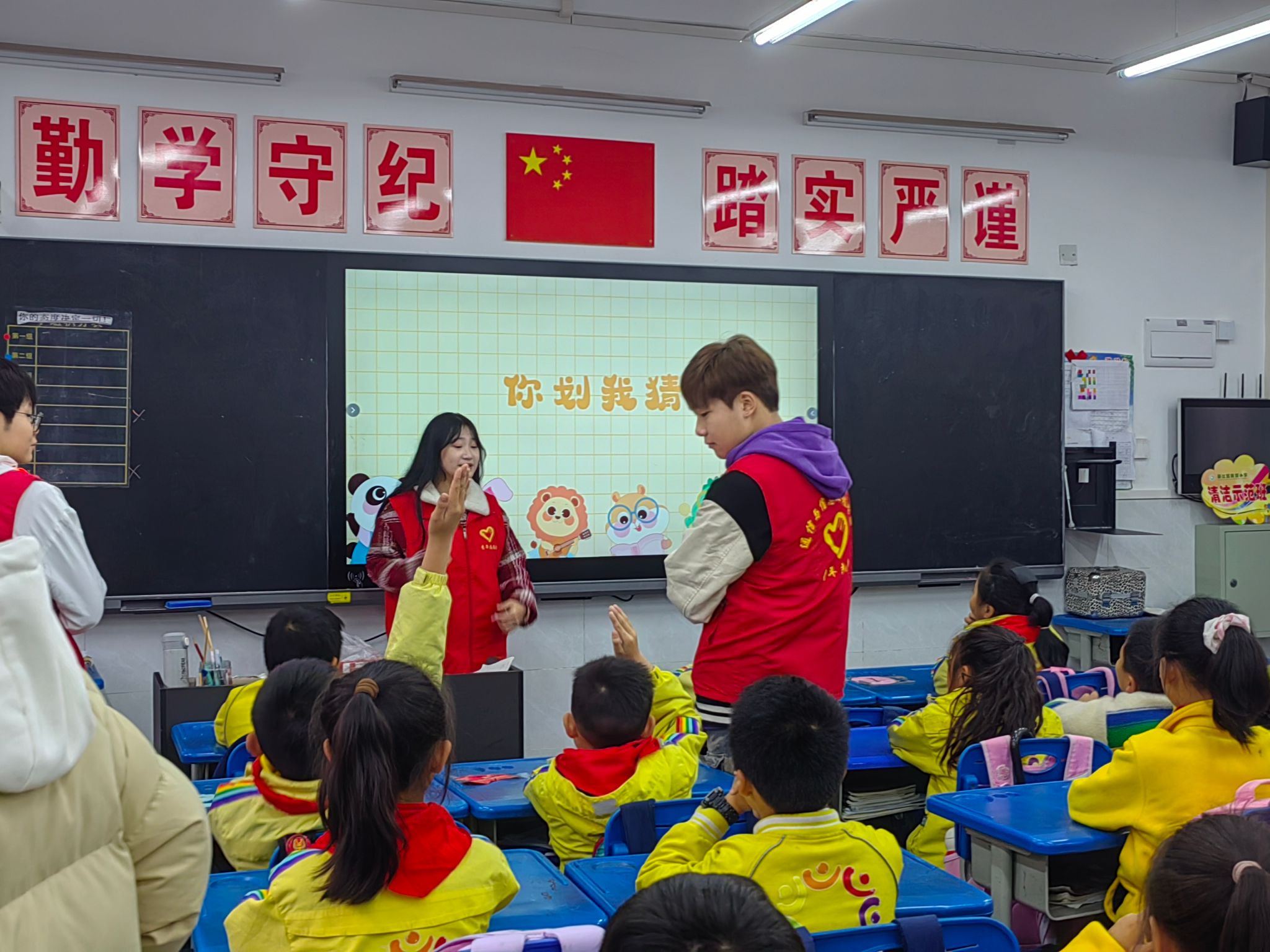 11月15日下午两点半,志愿者走进陵园小学和三年级五班的小朋友们开展了一场你画我猜趣味活动。