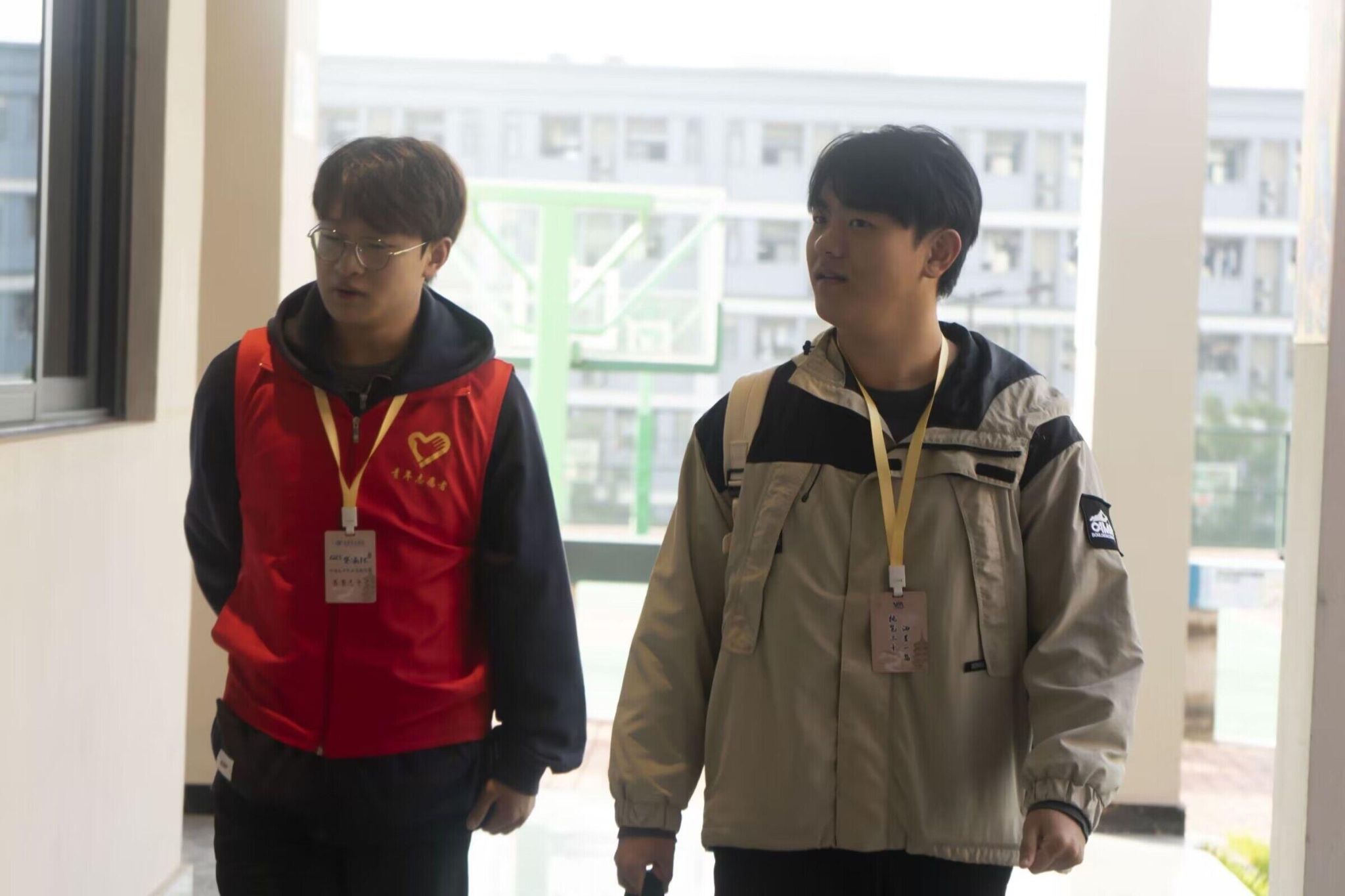清晨,志愿者们提前到达赛事场地,身着红马甲,以饱满的热情迎接五湖四海的参赛选手,带领参赛选手登记注册,志愿者全程跟随服务成为选手“小闹铃”。在志愿者的陪同下,选手们参观校区,体验学习氛围,了解我校“四位一体+双院制”人才培养模式,对我校“完满教育”育人理念有了进一步认识。考虑到参赛选手的身体状况及天气影响,学校还特意为选手提供休息区域,保证选手们在赛场上的极致发挥。