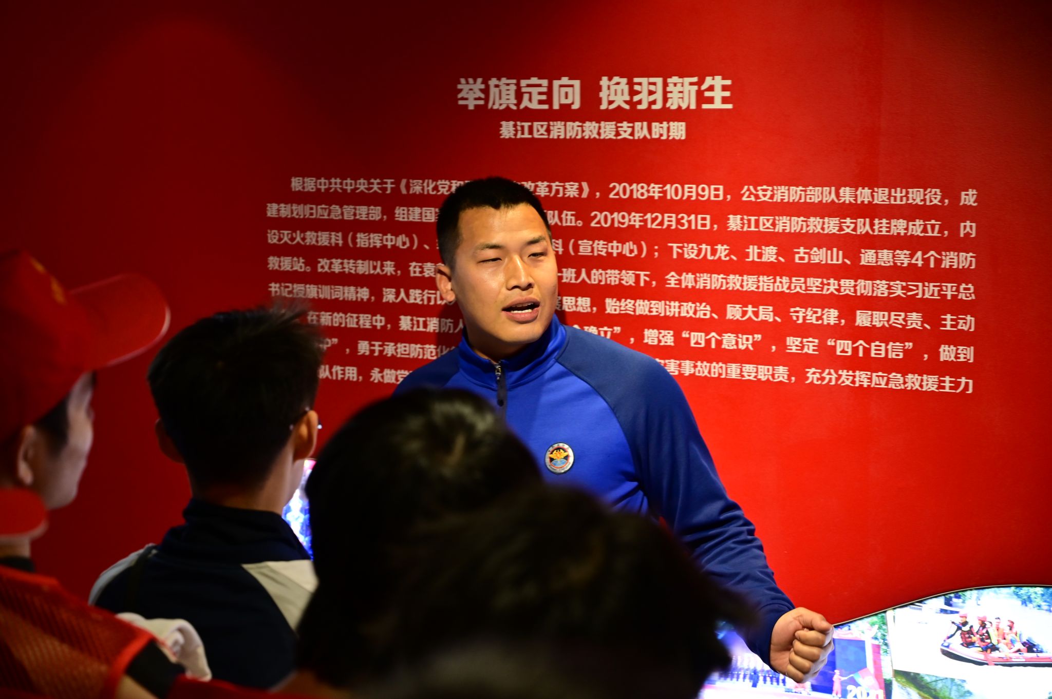 “家家防火,户户平安”。綦江区消防大队基地始终坚持贯彻培训、体验、传播、教学、示范等理念。天气愈冷,心却愈热。初到基地,一段短暂有趣的交流环节后,消防宣传人员以图文并茂的方式向志愿者详细介绍了消防科普教育基地建设的重要意义及内部消防展厅的设置,并带领大家参观消防知识学习区、模拟报警区、灭火扑救体验区、VR逃生体验区等区域。结合不同的模拟场景,消防员重点讲解了火灾形成的原因、自救与逃生方法、安全标志、家庭火灾预防、烟雾逃生自救等方面消防安全知识,强化同学们消防安全意识和自我保护能力。活动的氛围逐渐高涨,场上洋溢着热烈的气氛。大家在聆听讲解的同时也及时地提出自己的疑问,并得到了领队的专业解答。现场还开展了有关消防安全知识小课堂,介绍了綦江区消防大队基地的服务范围,开展的各项志愿活动具体内容以及对社会产生的积极影响等。