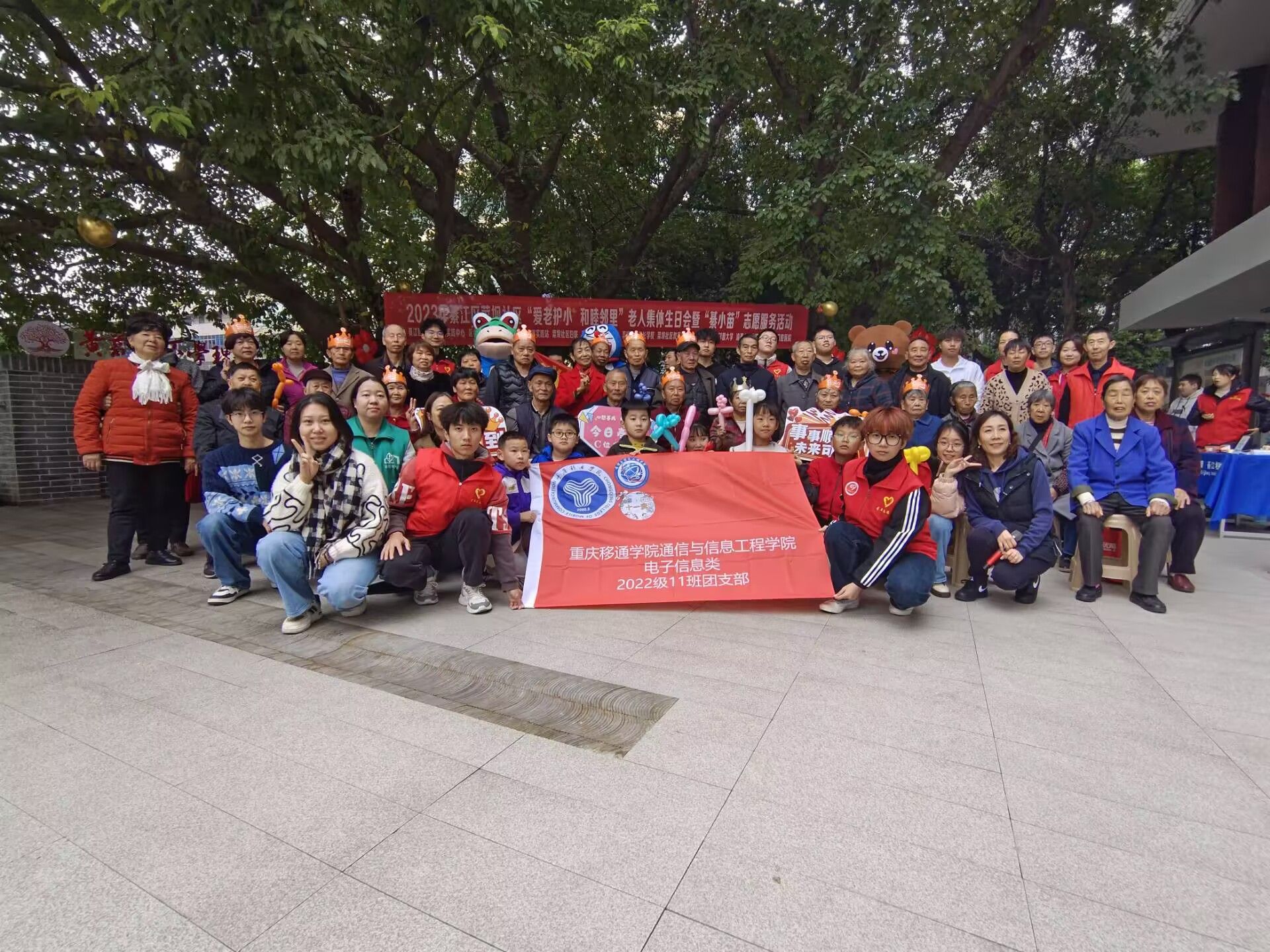 为了弘扬“尊老爱老”的中华传统美德,让同学能够更好地去关爱老人,温暖老人的心灵,使老人不再感到孤独,寂寞;同时搭起老人与青年一辈的沟通桥梁。为此重庆移通学院通信与信息工程学院2022级电子信息类11班联合菜坝社区开展以“关爱老人,传承美德”为主题的班团活动,提倡大家以一颗感恩的心回报社会,继承和弘扬中华传统美德,使自己的人生多一些关怀,多一份精彩!此次活动参与人数35余人,受益人数100余人。