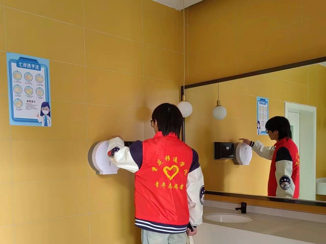 为更好地保护女性经期安全,积极践行关爱女性思想。2023年11月17日,重庆移通学院淬炼商学院青年志愿者协会“SHE”关爱女性志愿服务专项支队(綦江校区)携2023级财务管理中本19班在学校各教学楼及书院开展了卫生巾补充活动。