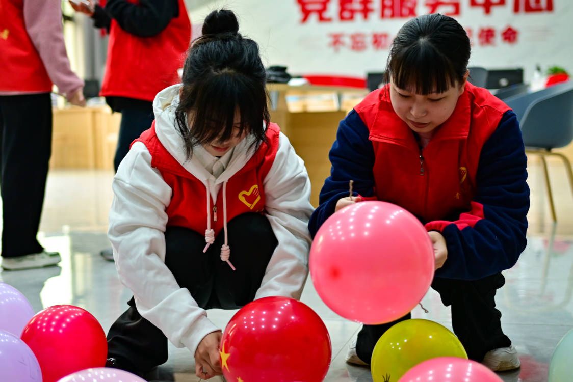 为驱动活动完满举行,让现场氛围更加活跃,志愿者们积极“打气”,缪力同心将活动所需气球、彩带等一一准备完满,为活动的顺利进行厚积薄发。同时,志愿者们心里很清楚:让孩子们都能积极参与活动,这是活动关键;咬定目标,统筹安排,真抓实干,这是活动核心。因而大家分工明确,扎实推进活动进程,听取负责人指挥,在准备工作中寄予浓厚的期许,希望孩子们在活动中能收获快乐与知识,为此也达成了“深耕细作,笃行致远”的一致看法。