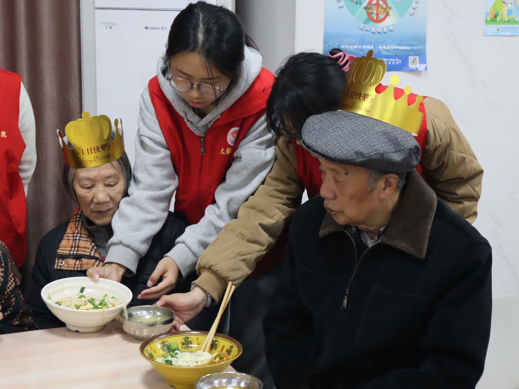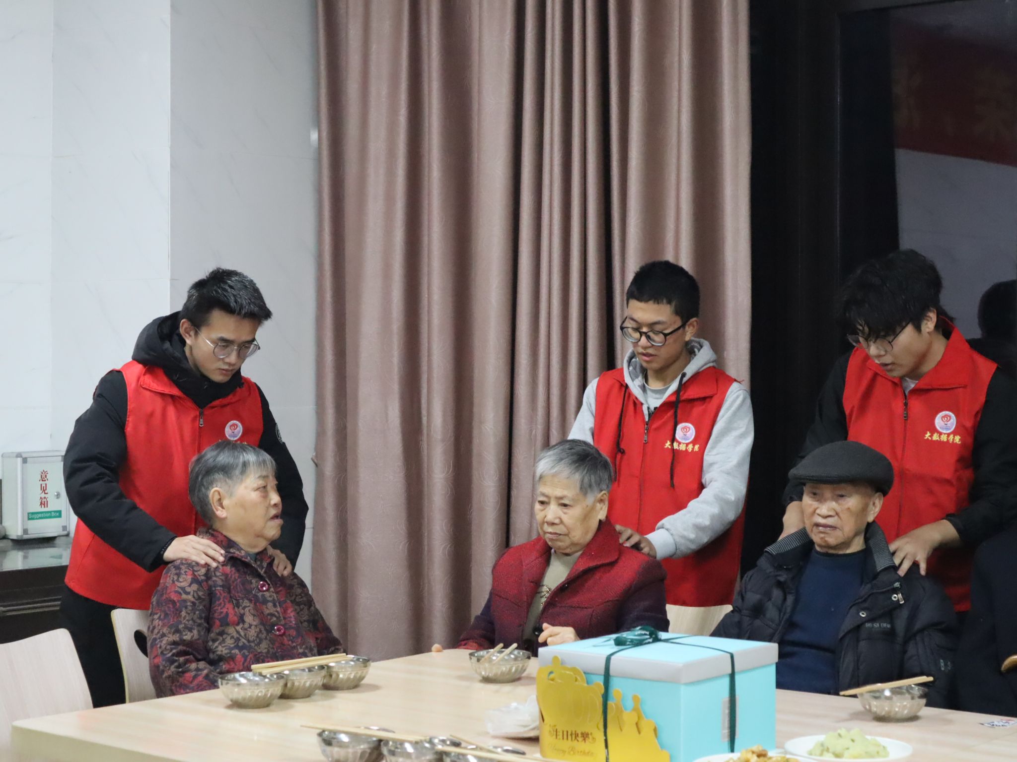 尊老爱幼一直是中华民族的传统美德,为进一步营造尊老、敬老、助老、爱老的良好氛围,让老年人感受到温暖和关怀,提升老人们生活归属感和幸福感。大数据学院青年志愿者协会于2023年11月20日下午6点在心新康养中心举办以“齐心共祝,温情相伴”为主题的老人集体生日会活动,给11月份生日的老人们送去了浓浓的爱意和不一样的温暖,让他们在欢声笑语中度过不一样的生日。