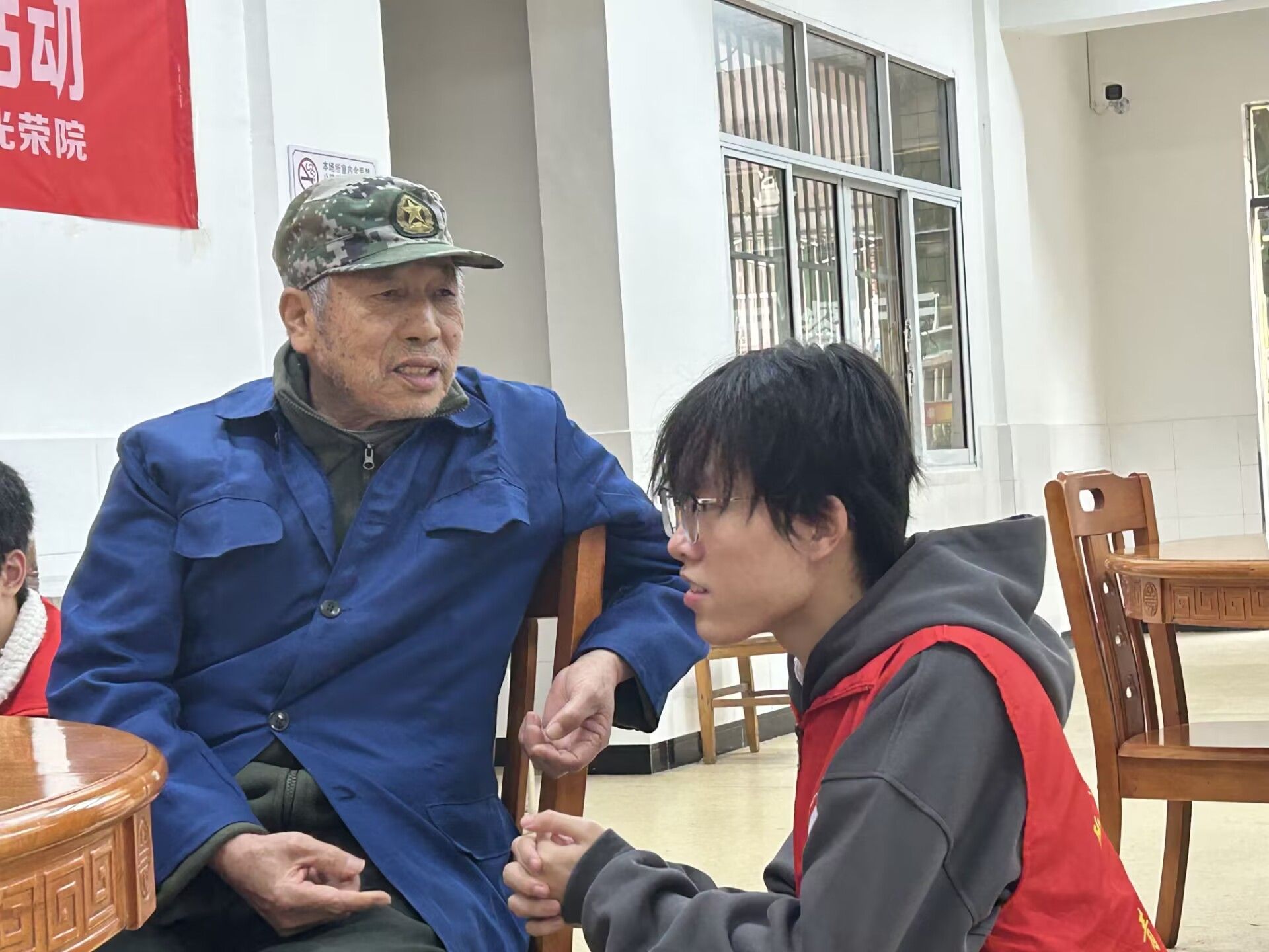 为弘扬拥政爱民、拥军优属的优良作风,继承和发扬拥军优属的光荣传统。为此,2023年11月19日,通信与信息工程学院2023级通信工程卓越11班前往綦江光荣院,与退伍军人展开活动。本次活动旨在激励青年关爱退伍军人,铭记并传承红色精神。本次活动参与人数15余人,受益人数24余人。