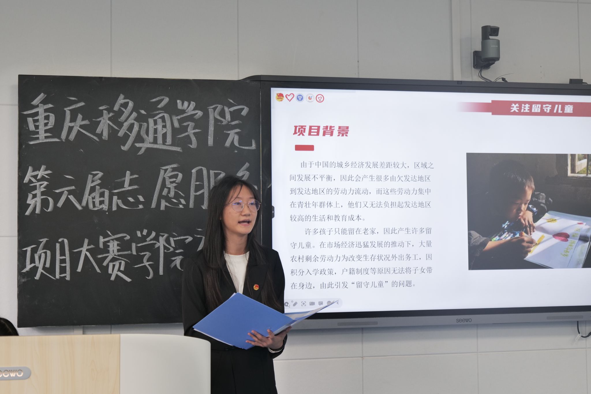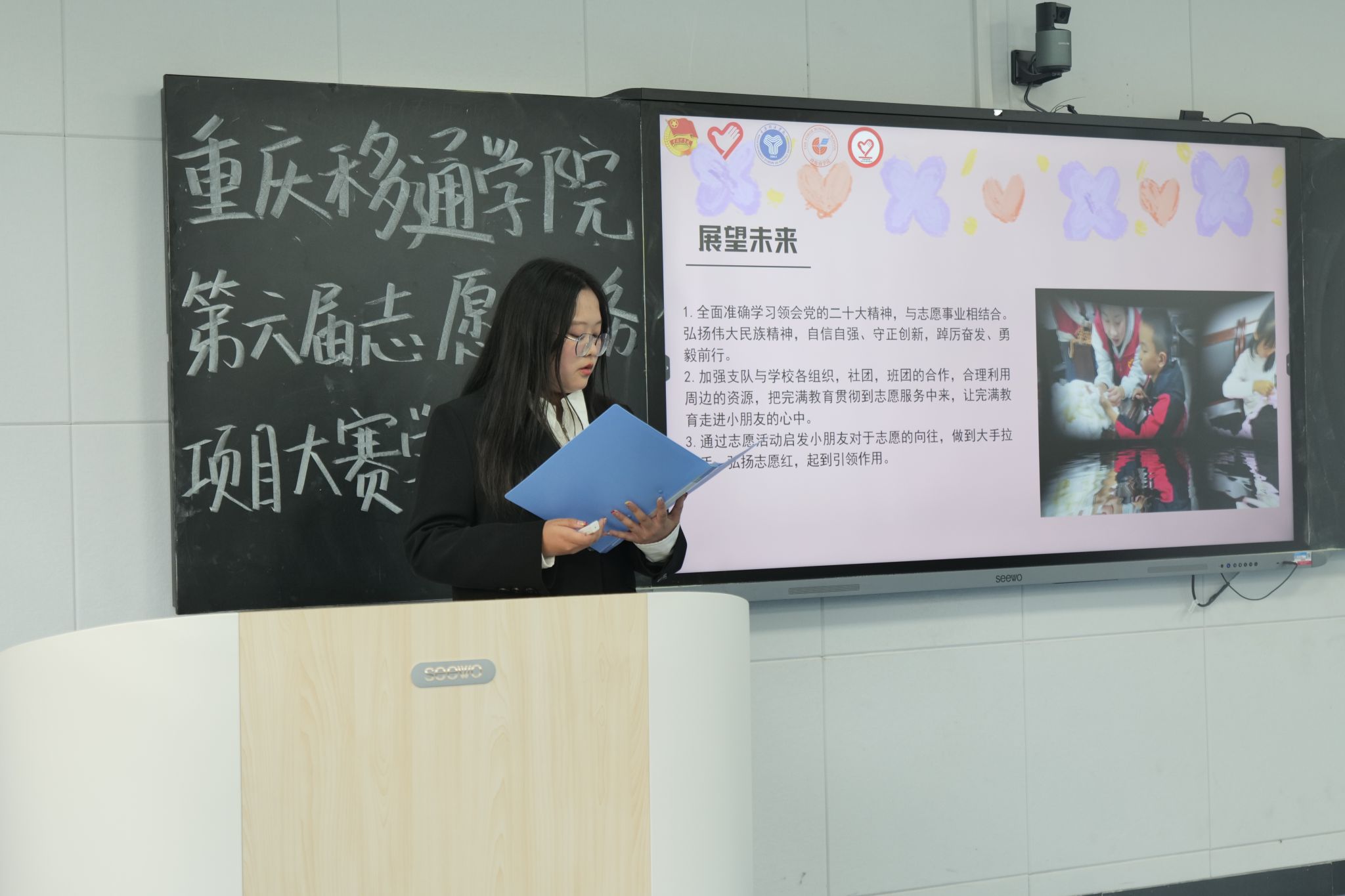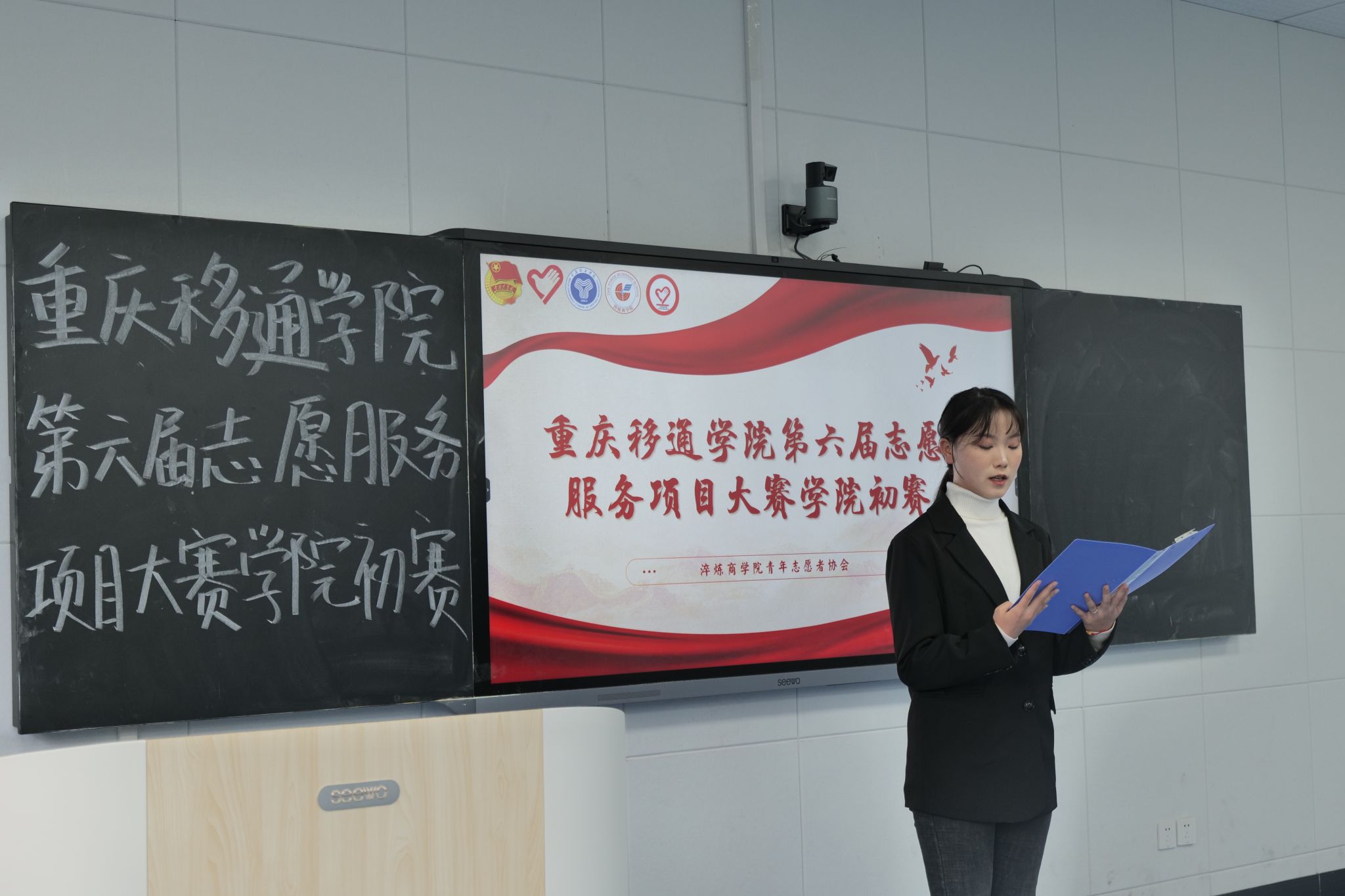 志愿传递文明,服务成就精彩。为深入学习贯彻习近平总书记关于志愿服务的重要指示精神,更好的促进志愿服务项目的发展。2023年11月22日重庆移通学院淬炼商学院青年志愿者协会在五教二楼智慧教室开展了第六届志愿服务项目大赛学院初赛。本次初赛荣幸邀请到了淬炼商学院学工副院长刘薇唯老师、竞技体育板块指导老师陈露桦老师、社团活动板块指导老师唐银桧老师、艺术修养与实践板块指导老师杨子莹老师、志愿服务板块指导老师张琳莉老师参与此次答辩评比。