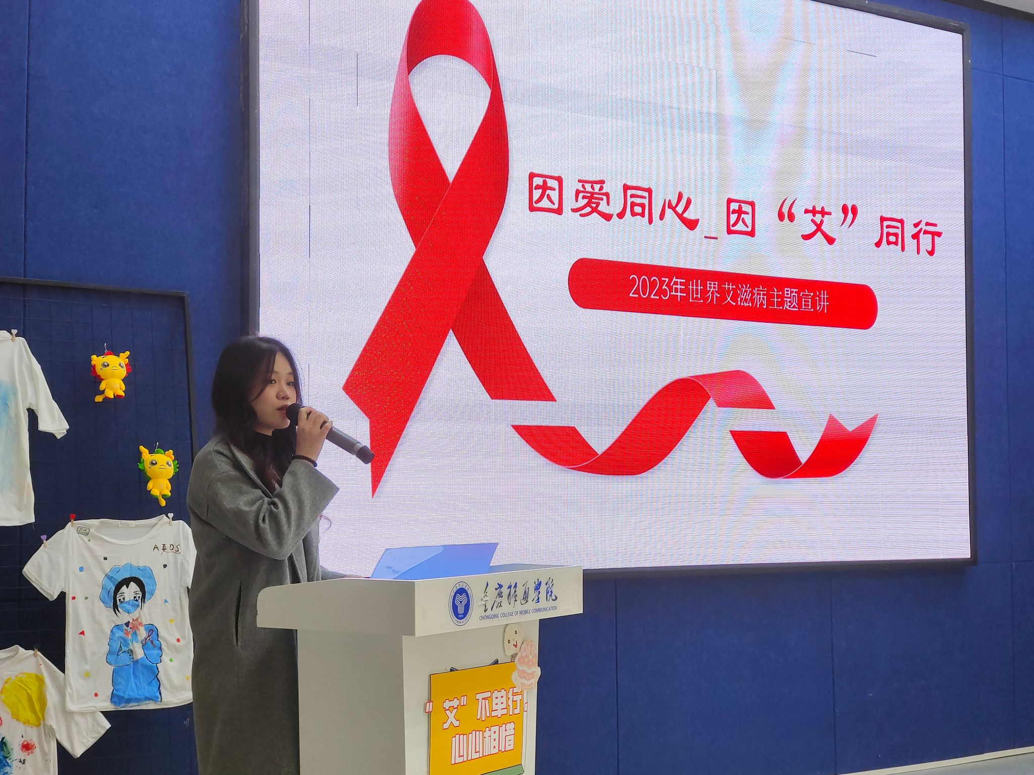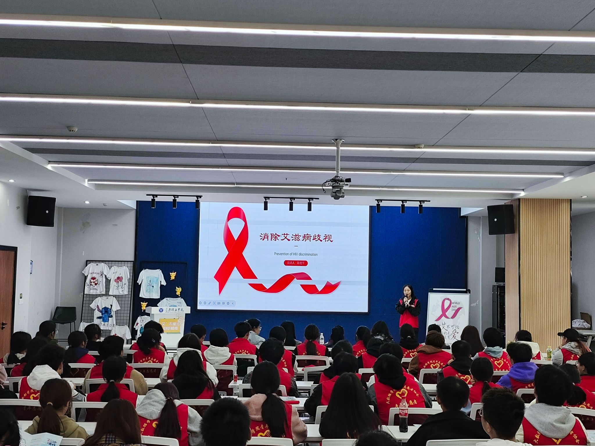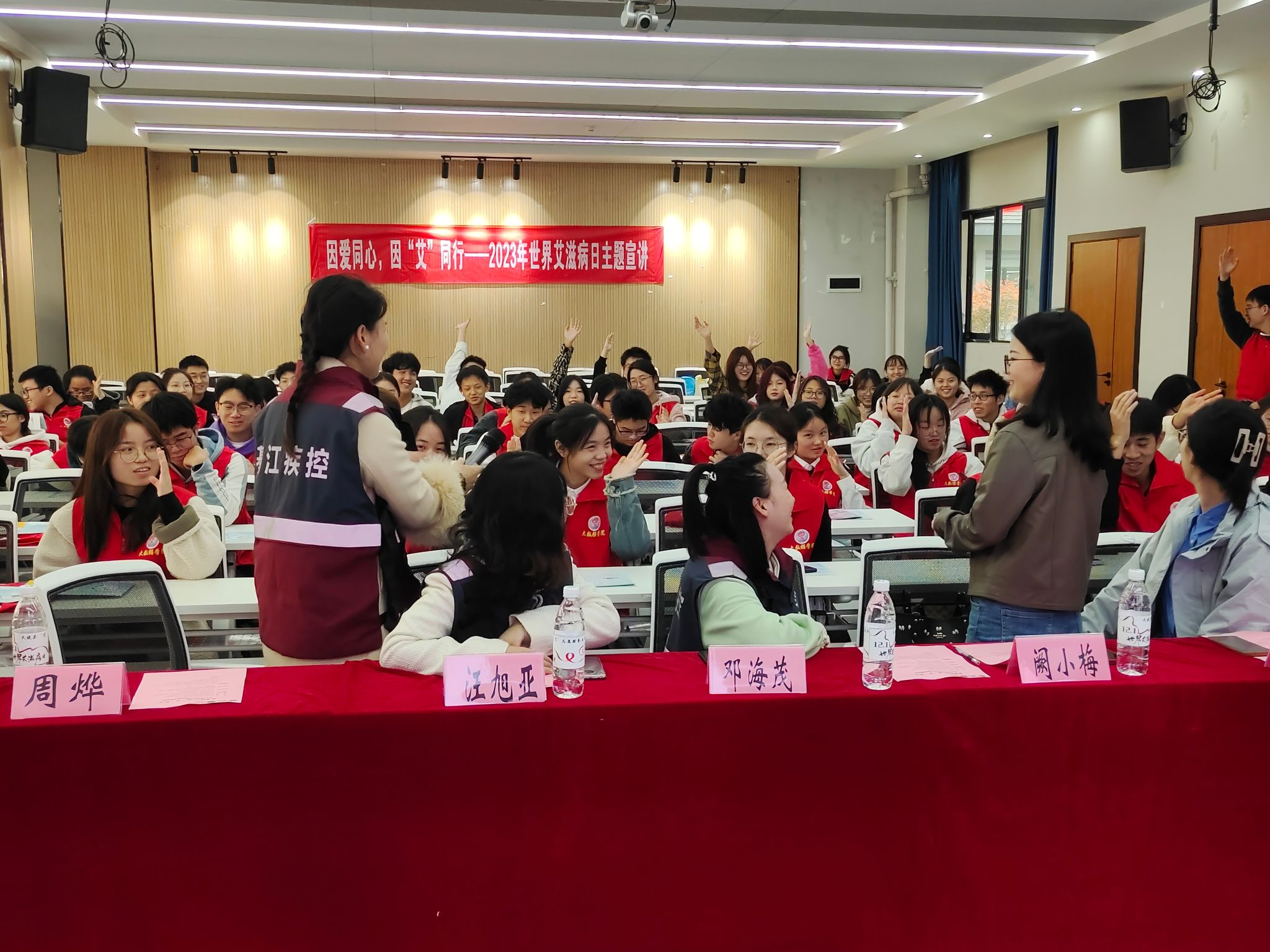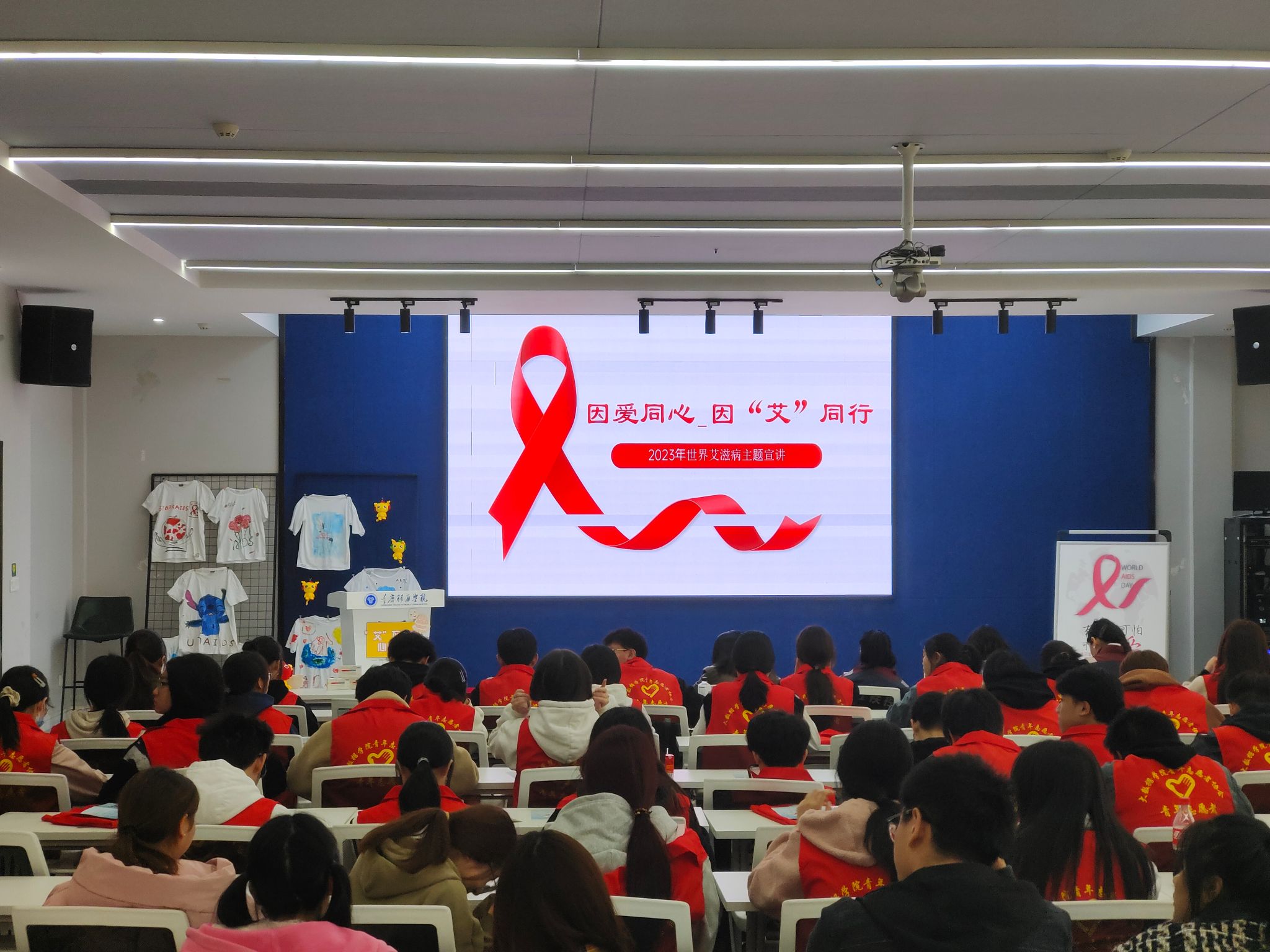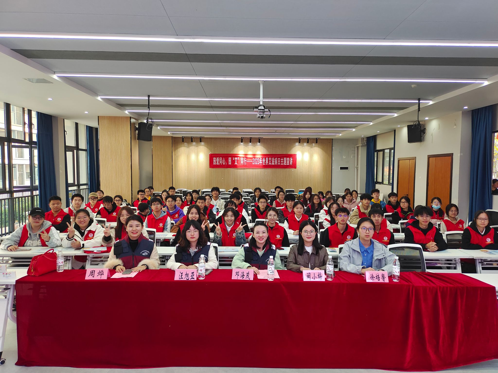 青春红丝带,防艾进校园。为进一步宣传艾滋病预防知识,帮助学生正确认识艾滋病,增强学生自我保护意识和社会责任感,2023年11月22日下午15点,在第36个世界艾滋病日来临之际,天使关“艾”志愿服务专项支队于綦河书院观涛·多功能报告厅举办了以“因爱同心,因‘艾’同行”为主题的2023年世界艾滋病日宣讲活动,为确保同学们得到更为专业的知识,我们诚挚邀请到綦江区疾病预防控制中心周烨老师来、邓海茂老师和汪旭亚老师来到现场。