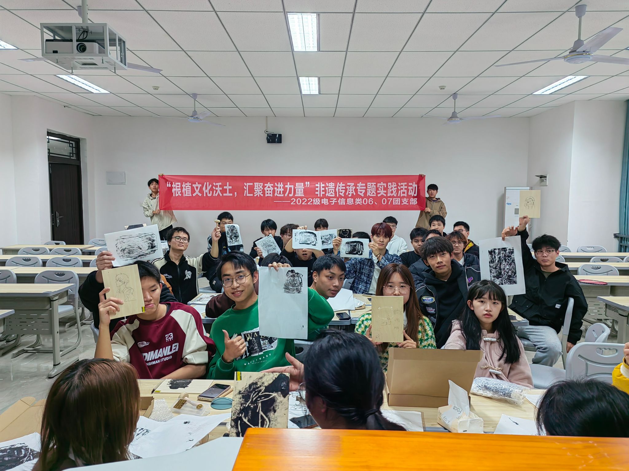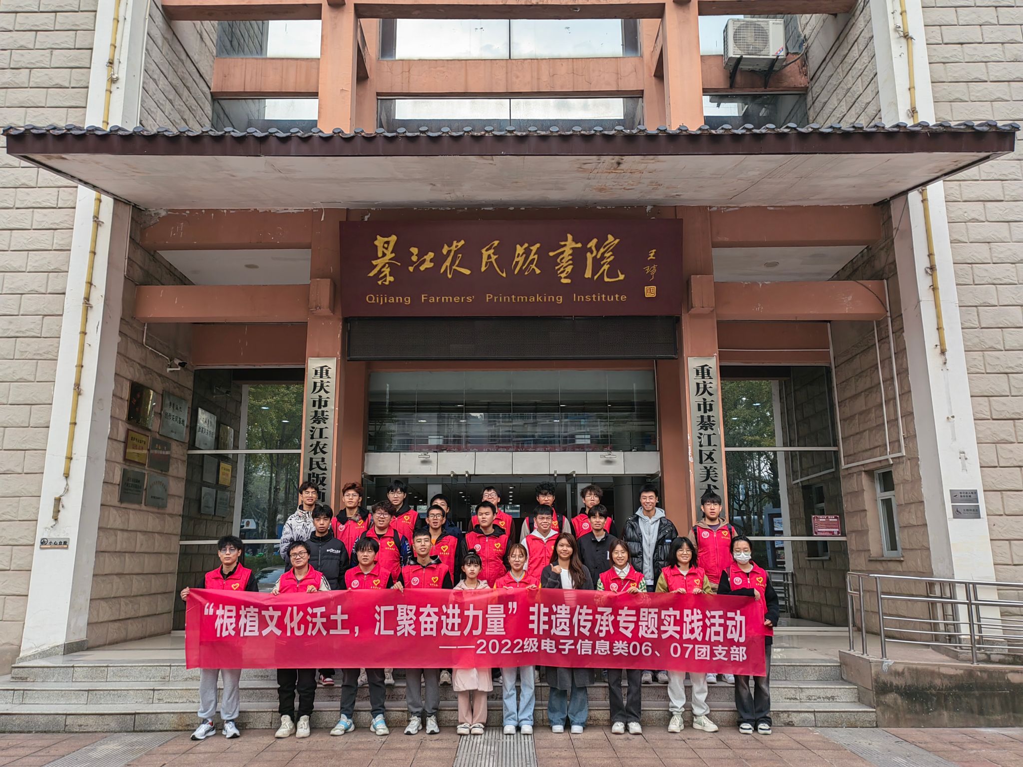 冬日暖阳初照,微风拂过掠过校园的每一处角落,重庆移通学院通信与信息工程学院2022级电子信息类卓越6、7班的同学们在2023年11月24日的上午迎着冬雾之上的初阳前往綦江农民版画院,同学们将在此举办一场别开生面的非遗传承专题实践活动——“根植文化沃土,汇聚奋进力量”版画艺术体验活动。本次活动旨在保护和传承我国非遗文化,让移通学子了解綦江本地的非遗文化,本次的旅途意在培养同学们对版画艺术的兴趣和热爱,增强其对传统文化的认同感,而此刻,便随同学们一同走进綦江版画艺术的传承之中。此次活动参与人数76余人,受益人数100余人。