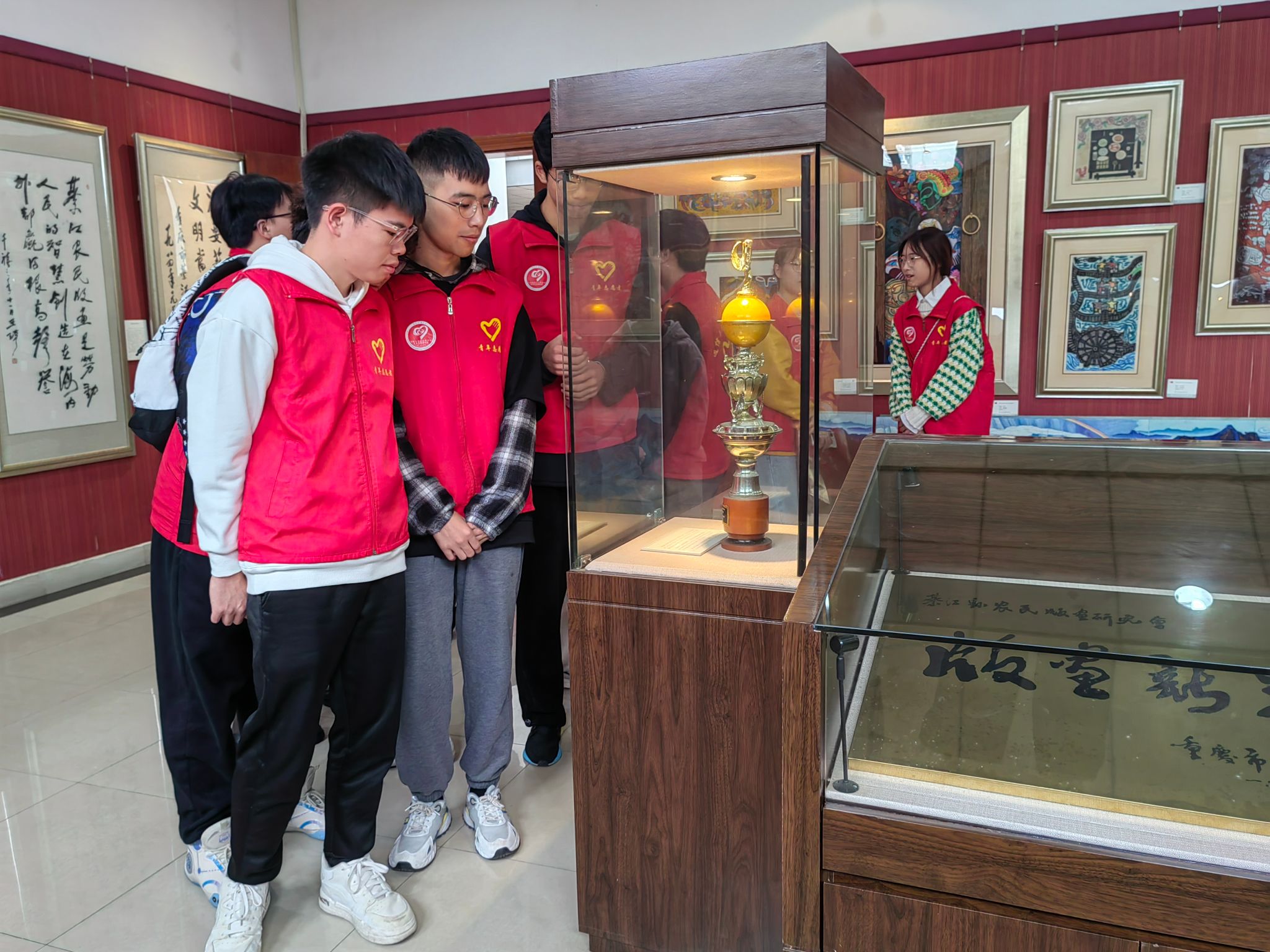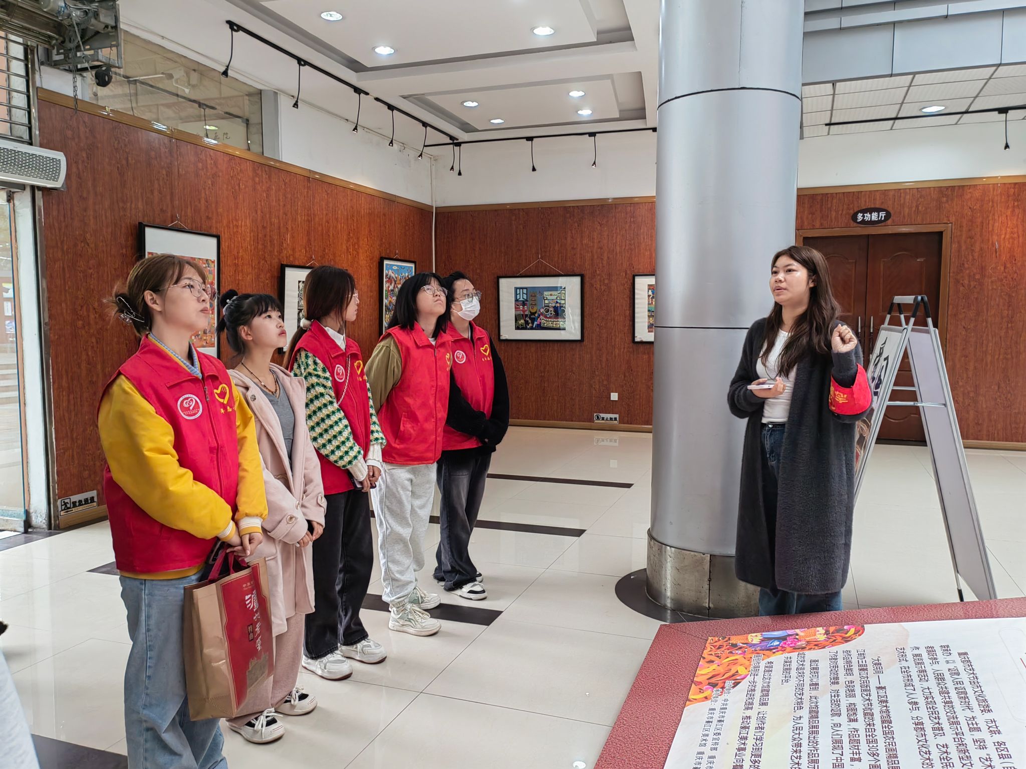 清晨的曦雾还未散去,同学们已然踏上本次的旅途,半个小时的车程同学们便到了目的地,同学们的眼里满是好奇与期待。同学们在专业人士的指导下,了解了版画的历史、技艺和艺术价值。同时也了解到了版画的起源、发展以及在我国各个地区的特色表现形式,对这一传统艺术有了全新的认识。同学们还参观了綦江农民版画院的各类展览,近距离欣赏了精美的版画作品,感受到了版画艺术的魅力。美好的时光总是短暂,在正午时,同学们依依不舍与版画院的老师告别,带着版画的“知识与历史”回到了学校。而校园里,早已有人在等待着。