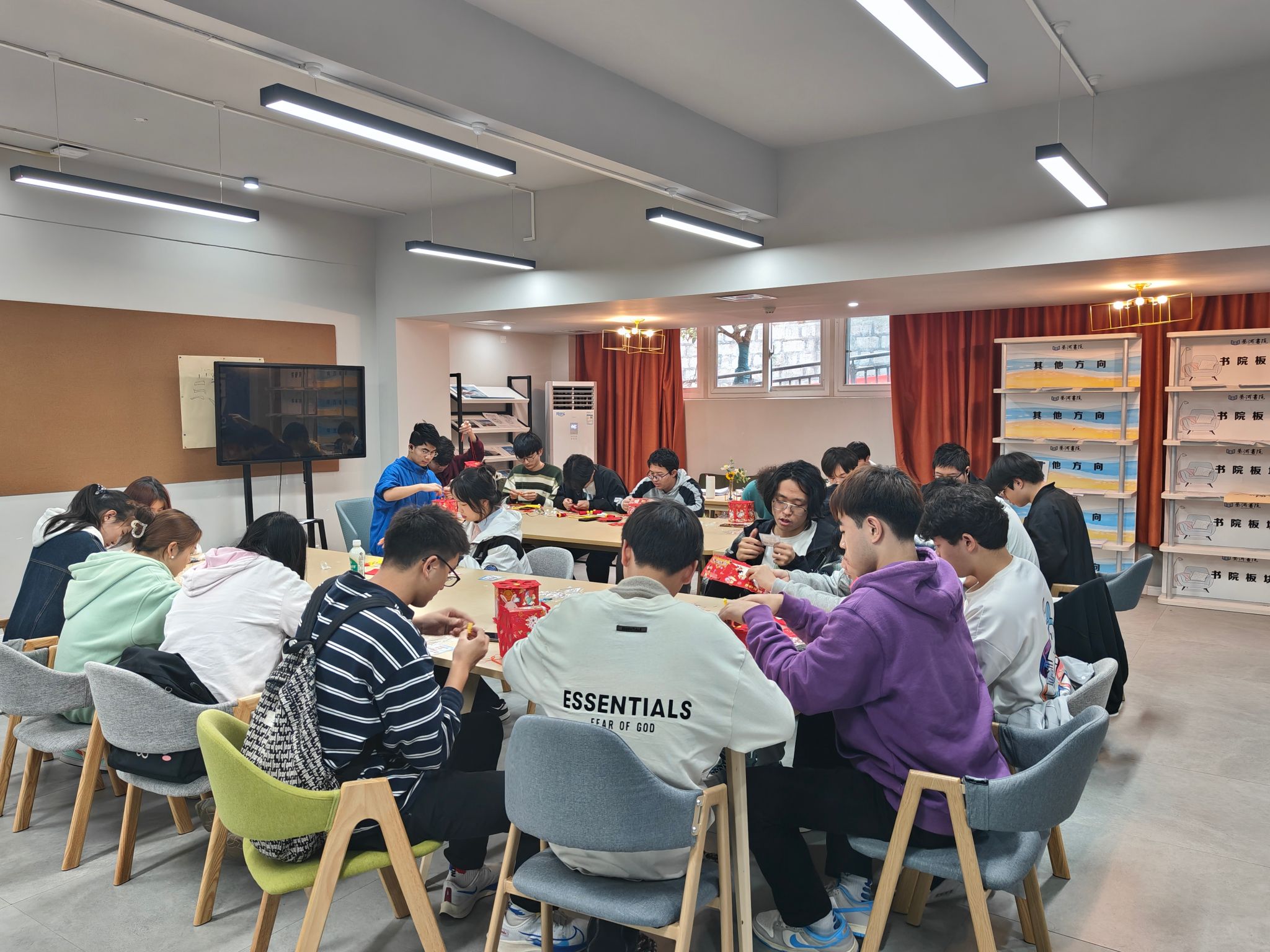 既然要传达对与这些孩子们的关怀,自然不能空手而去,同学们亲手制作的富有浓厚年的气息的手工作品便是不错的选择。既然要送出年的味道,极具象征性的灯笼自然必不可少,除此之外便是精美的中国结,与另外一些象征着过年的饰品。手工作品并不复杂,在全班人的努力下,很快便制作完毕。